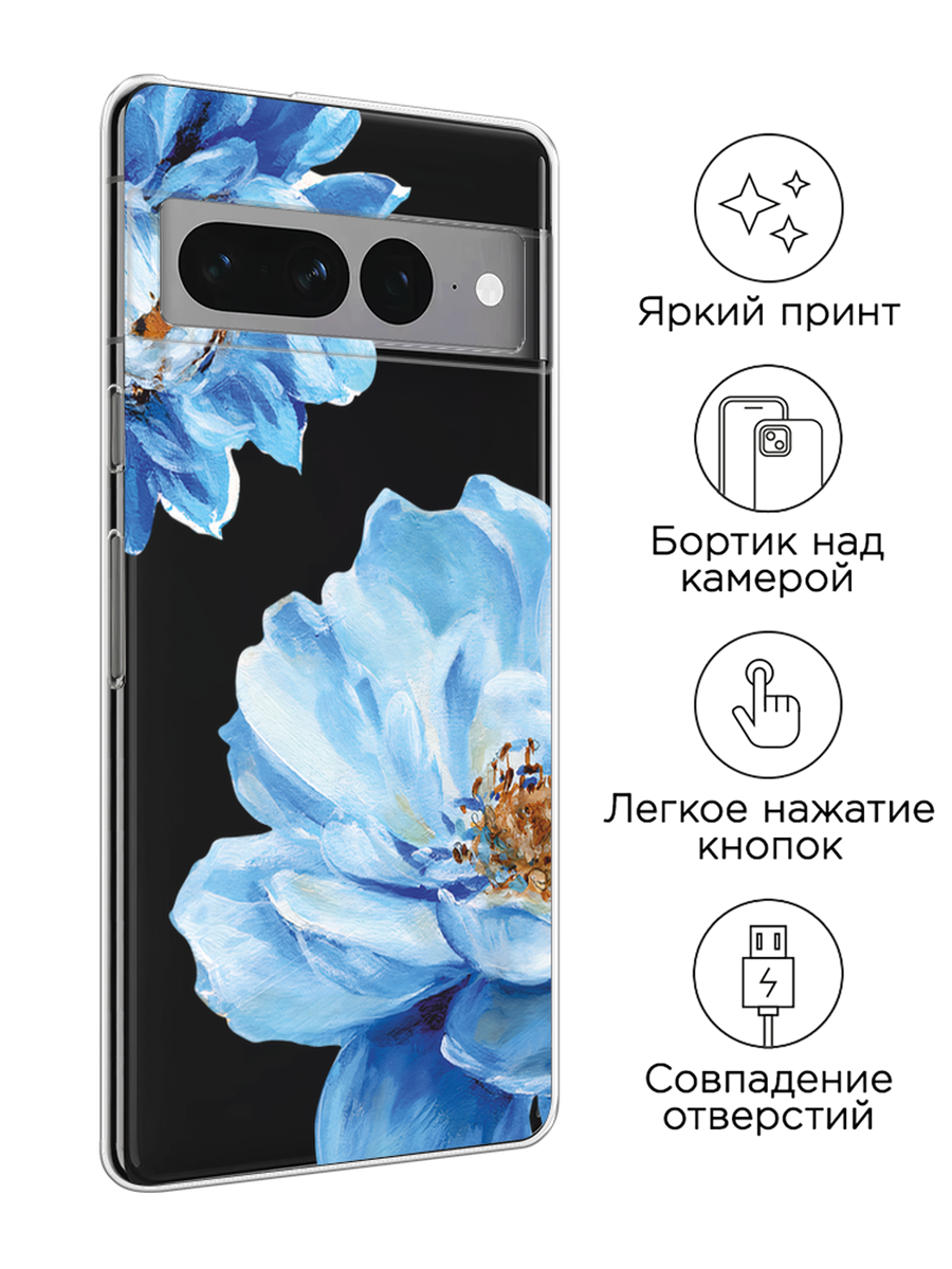 10 цен на Чехол на Google Pixel 7 Pro / Гугл Пиксель 7 Про с принтом Голубые клематисы, прозрачный
