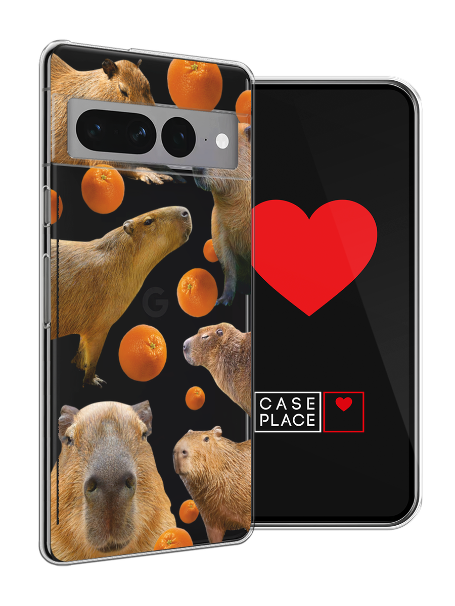 10 цен на Чехол на Google Pixel 7 Pro / Гугл Пиксель 7 Про с принтом Капибара и апельсины, прозрачный