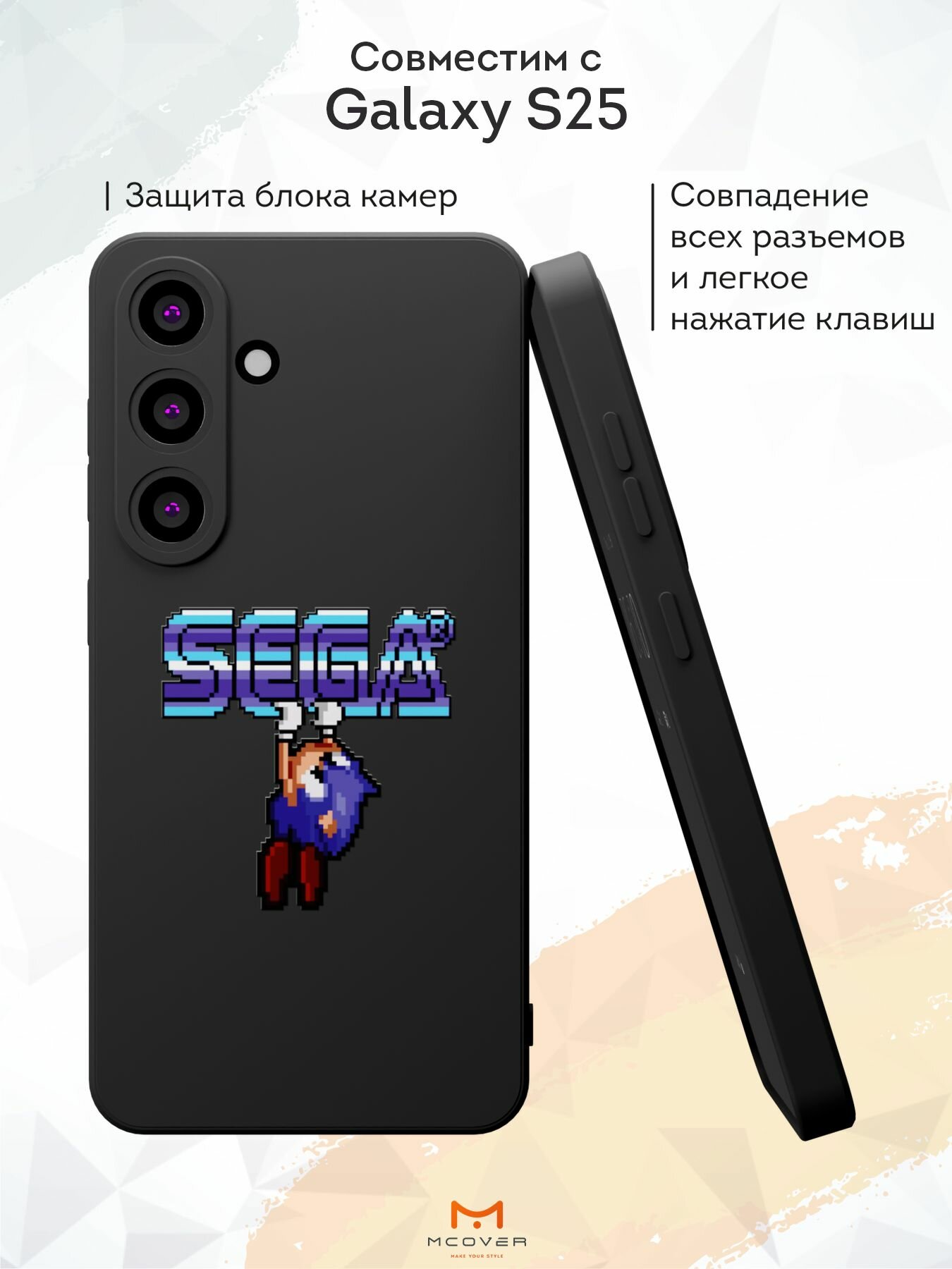 Силиконовый чехол Mcover, на Galaxy S25, с принтом Сега. Соник, черный, с защитой камеры информация:
