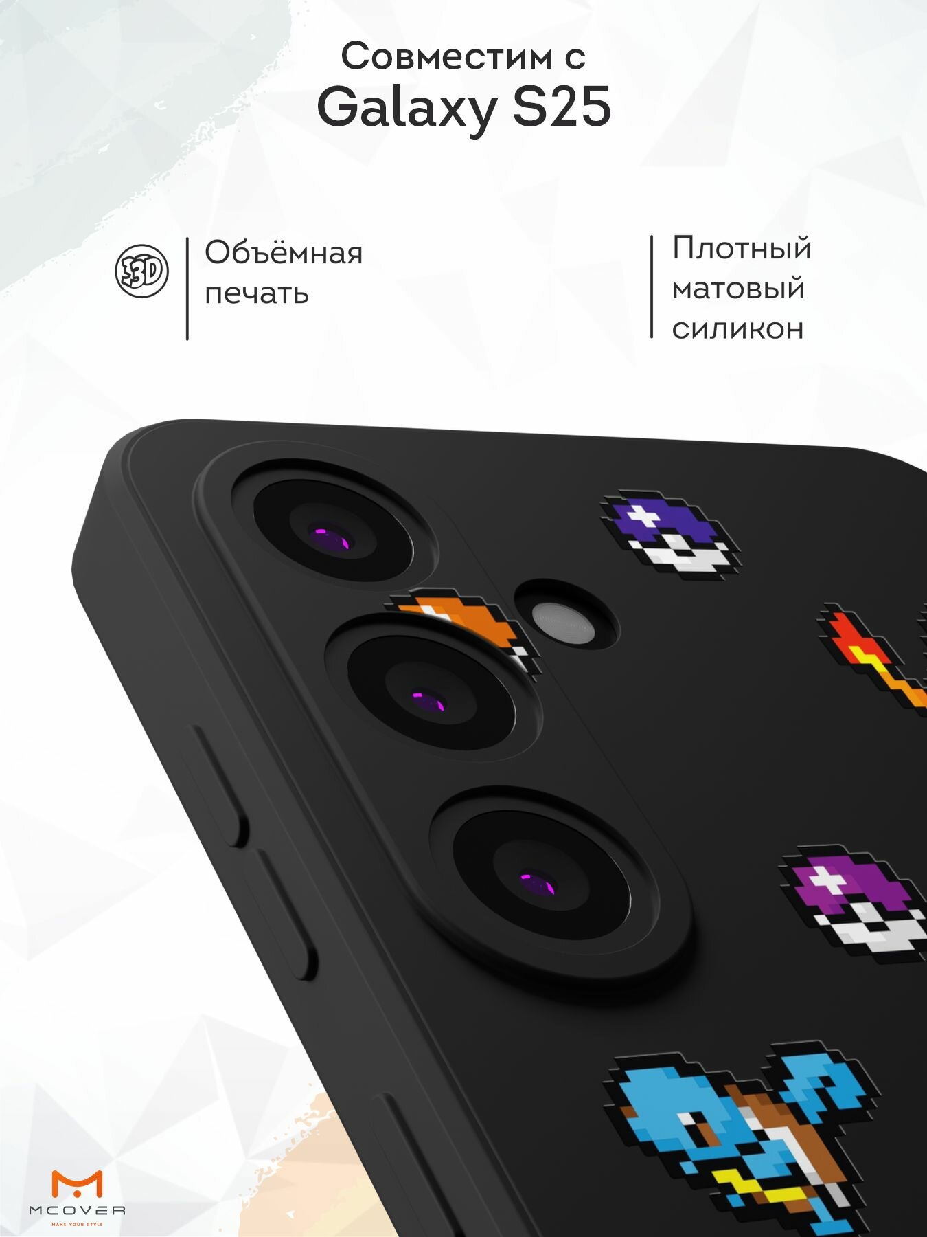 Отзывы на Силиконовый чехол Mcover, на Galaxy S25, с принтом Покемоны, черный, с защитой камеры