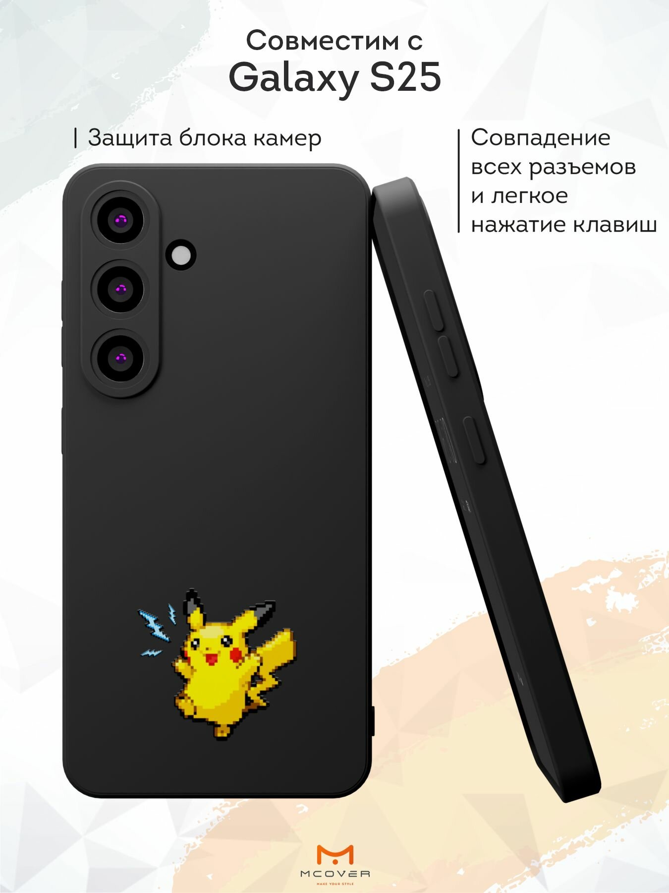 Силиконовый чехол Mcover, на Galaxy S25, с принтом Пикачу, черный, с защитой камеры информация: