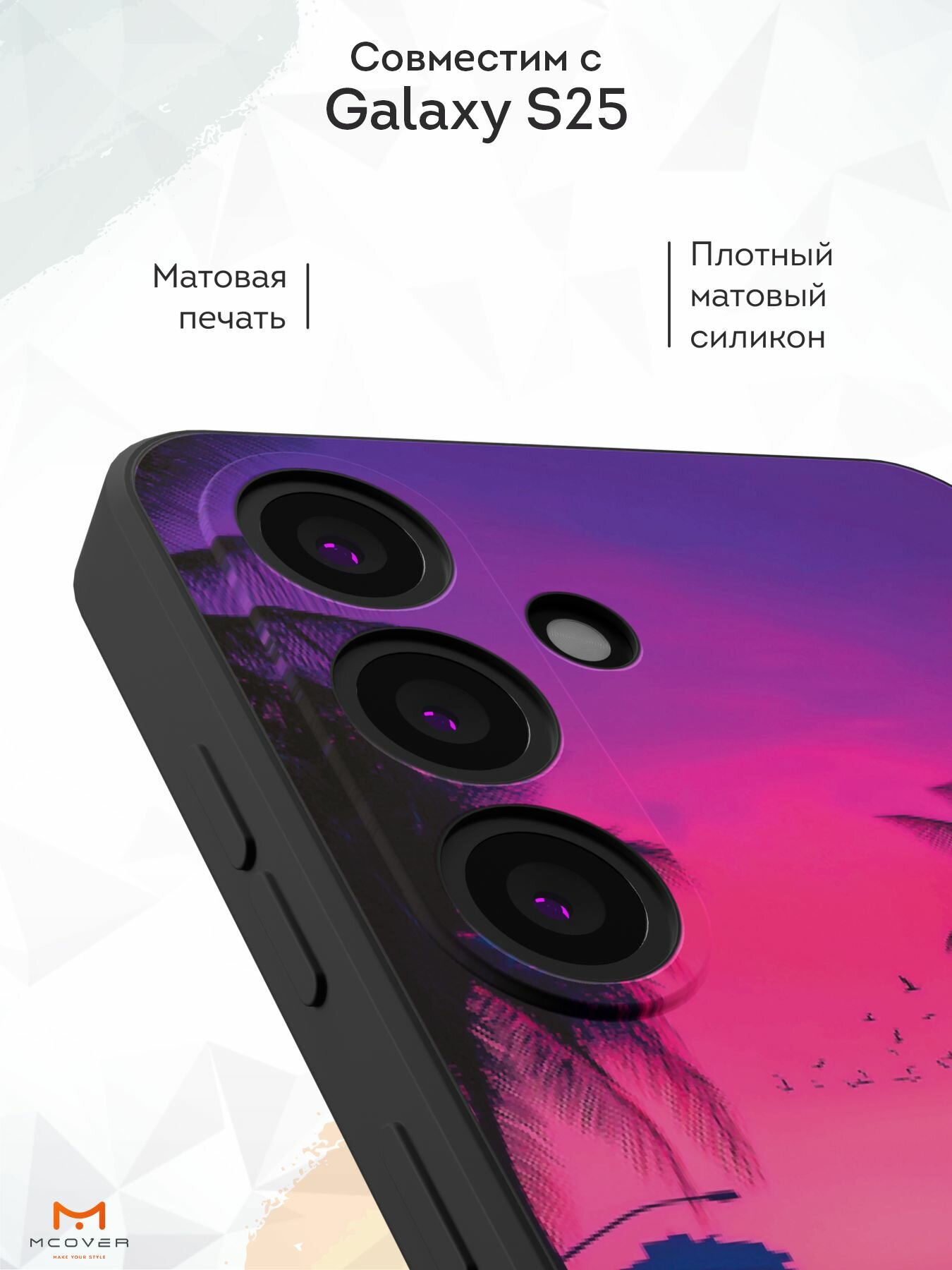 Силиконовый чехол Mcover, на Galaxy S25, с принтом Vice city, черный, с защитой камеры информация: