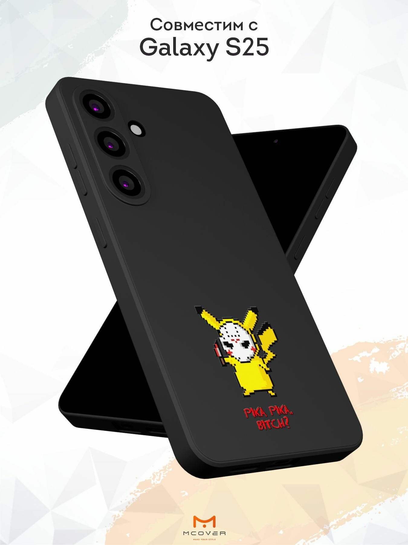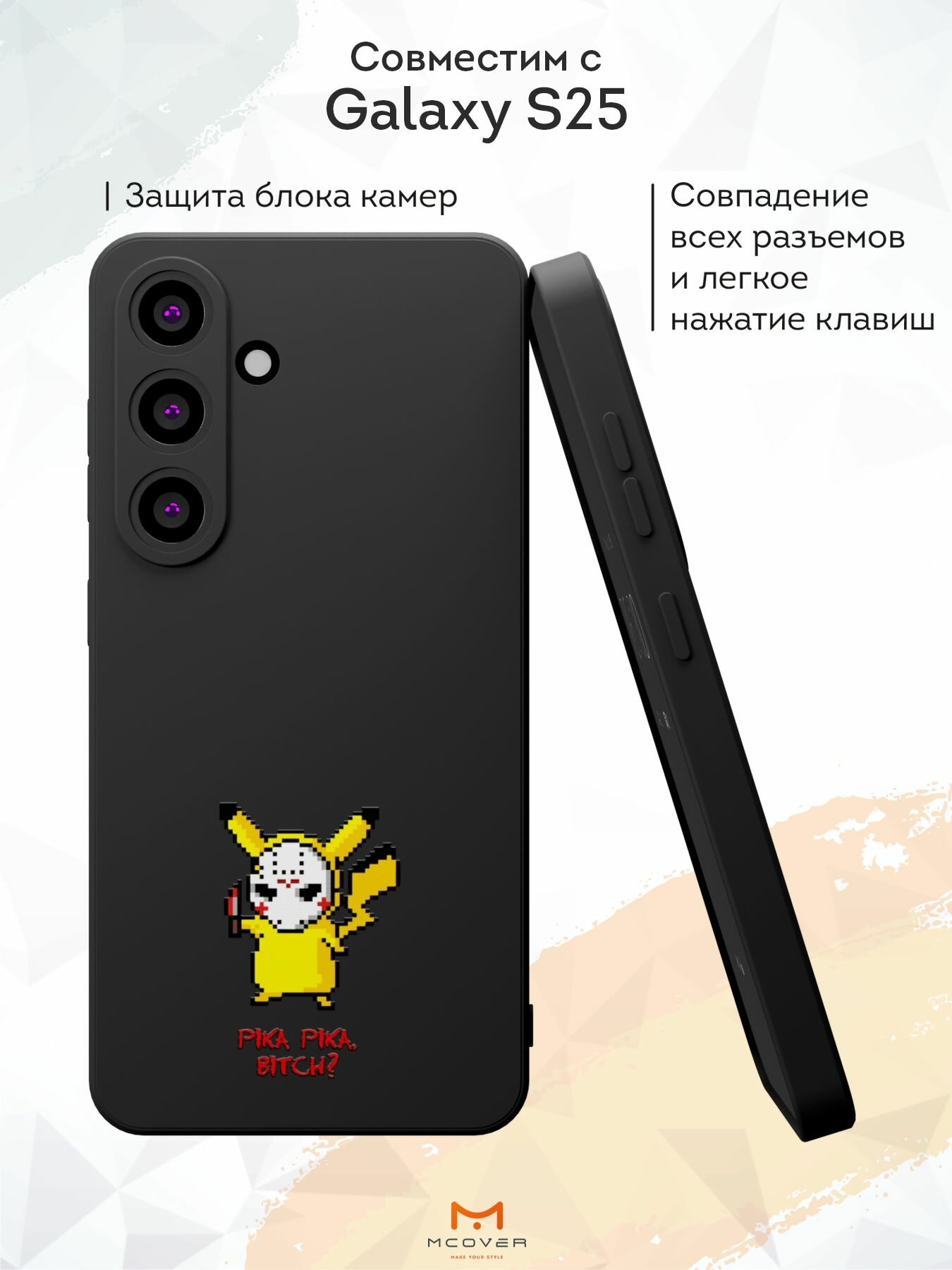 Силиконовый чехол Mcover, на Galaxy S25, с принтом Pika pika, черный, с защитой камеры информация: