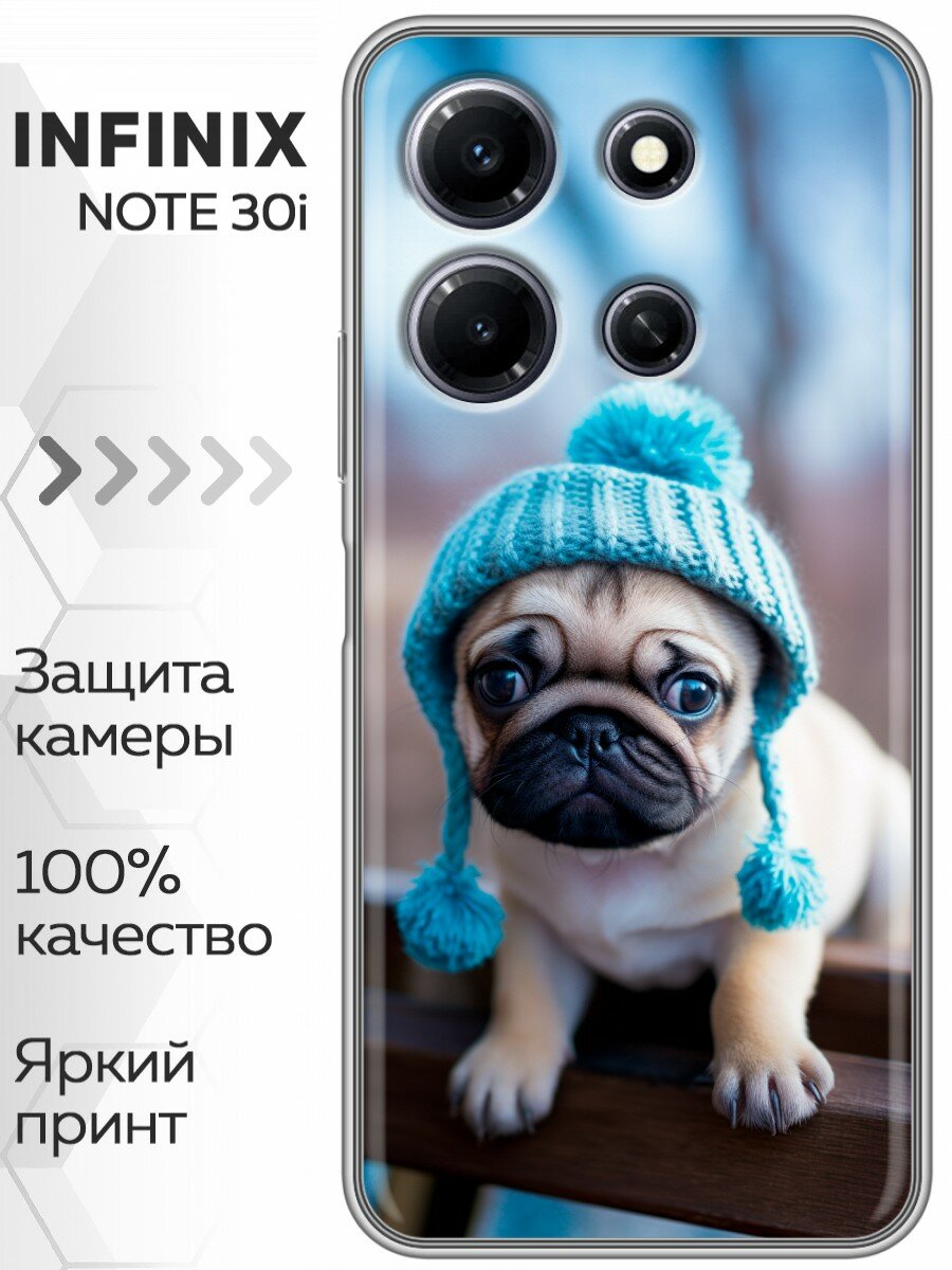 10 цен на Чехол для Infinix Note 30i 4G с принтом Щенок мопса в шарке на Инфиникс Нот 30i 4G