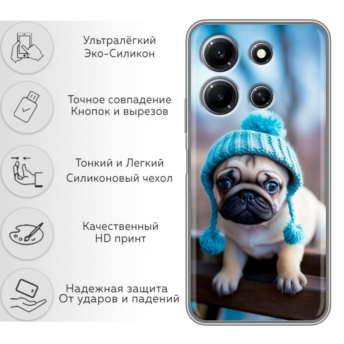 Отзывы на Чехол для Infinix Note 30i 4G с принтом Щенок мопса в шарке на Инфиникс Нот 30i 4G