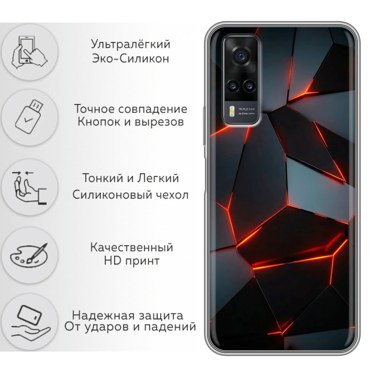 Отзывы на Чехол для Vivo Y31, Vivo Y53S с принтом Черный на Виво У31, Виво У53S