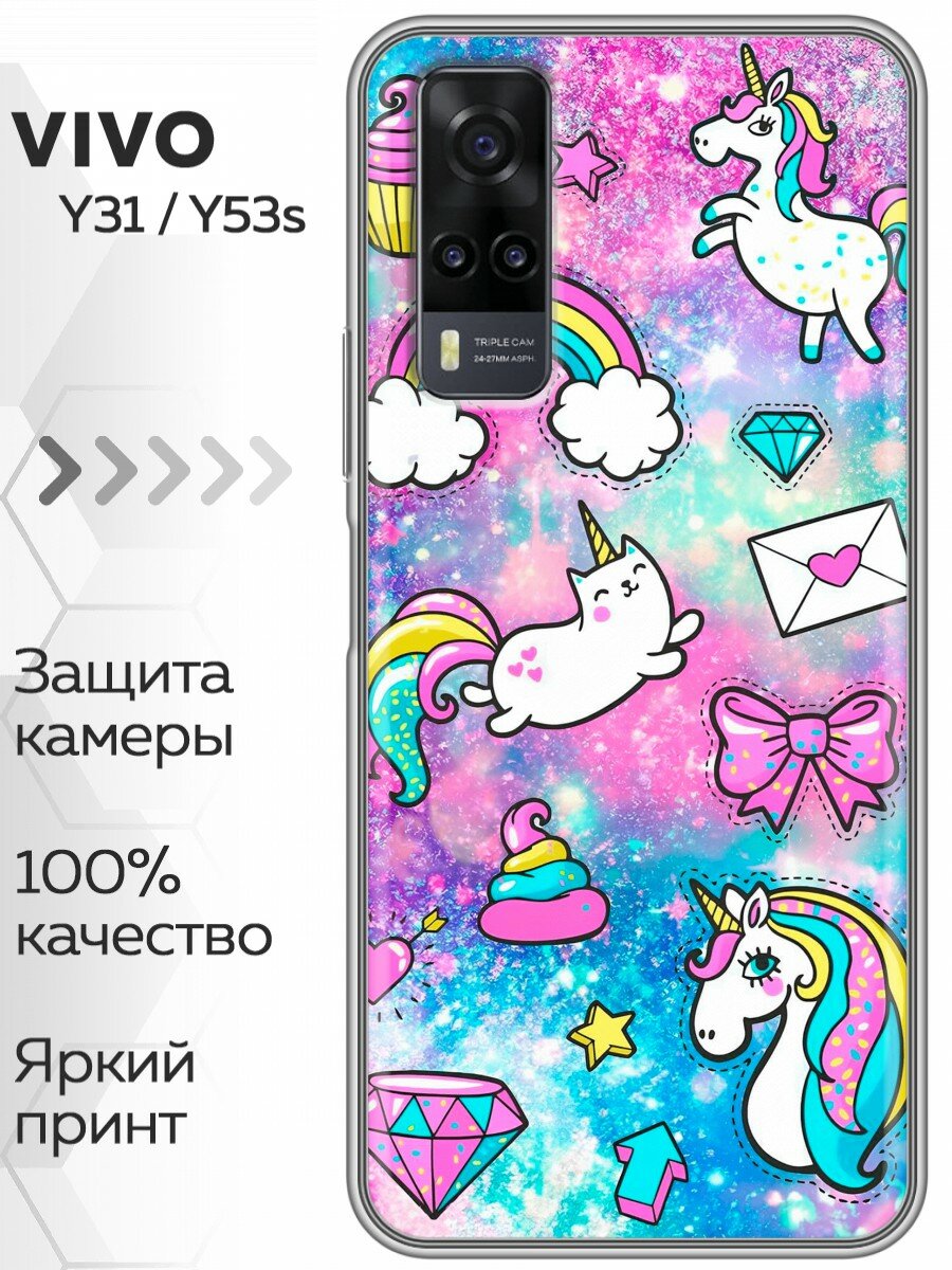 10 цен на Чехол для Vivo Y31, Vivo Y53S с принтом Единороги для девочки на Виво У31, Виво У53S