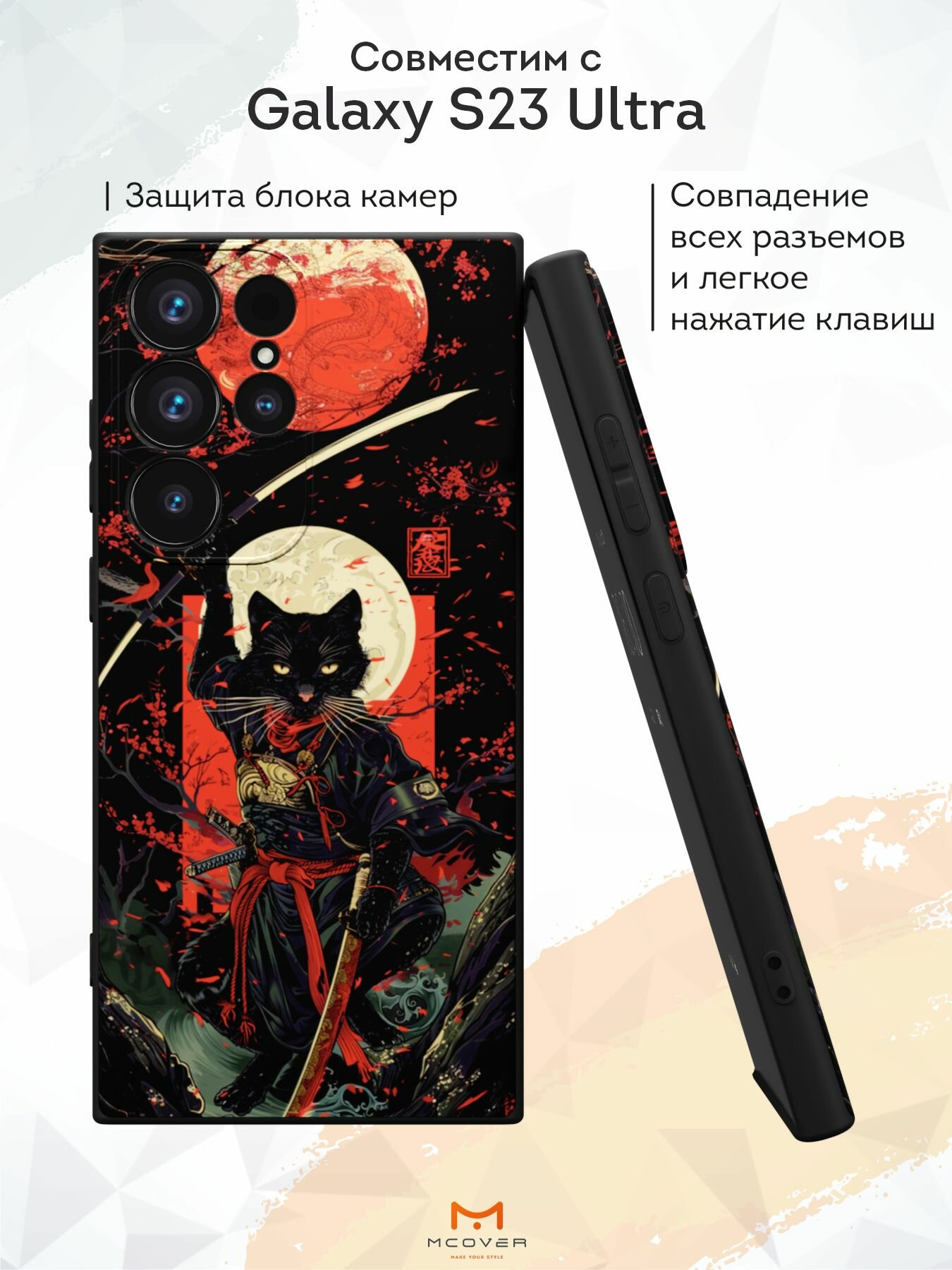 Отзывы на Силиконовый чехол Mcover для Galaxy S23 Ultra (Галакси С23 Ультра), Кот-самурай