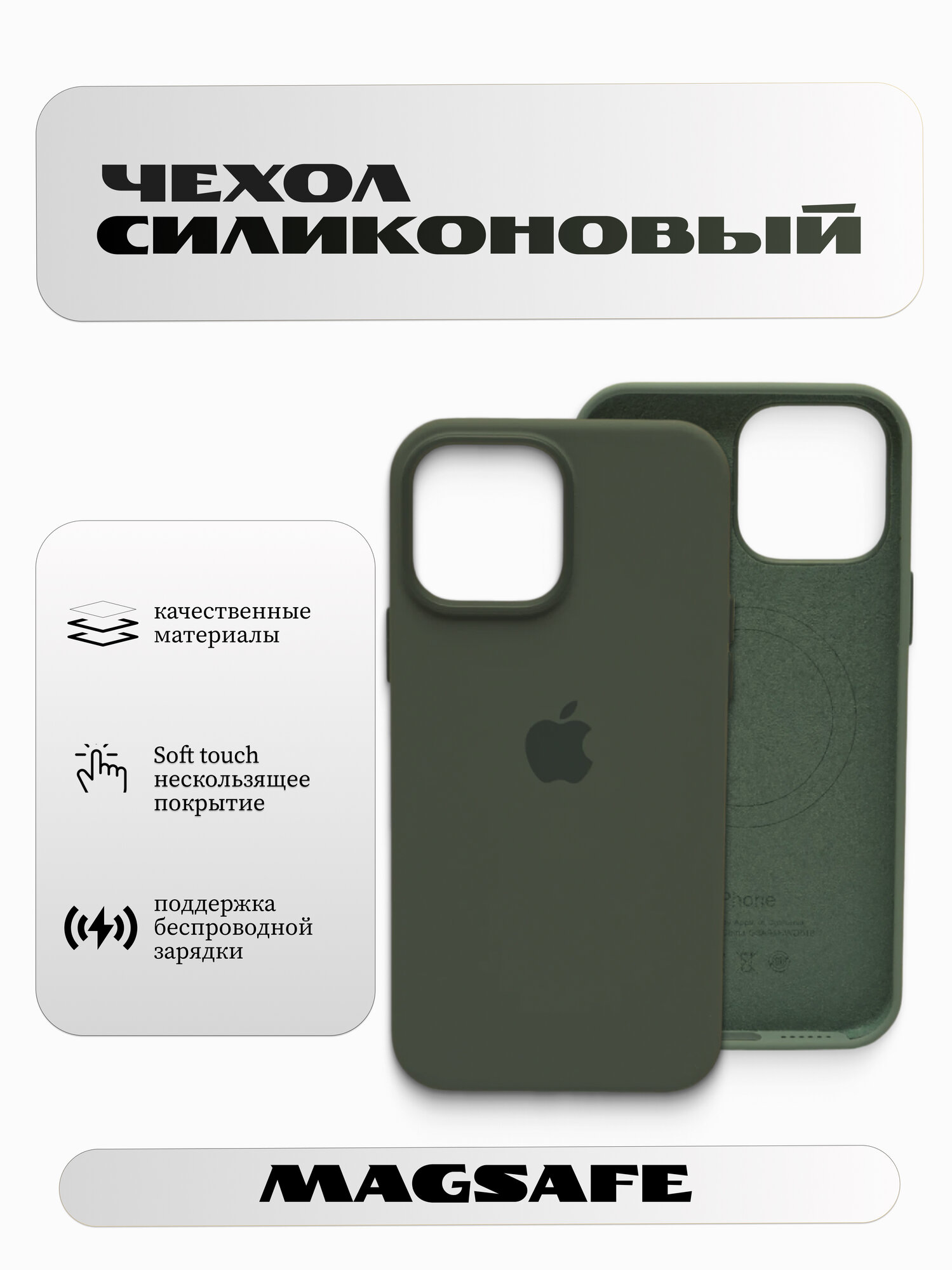 10 цен на Чехол силиконовый для iPhone 13 mini, MagSafe, Soft touch, цвет зеленый
