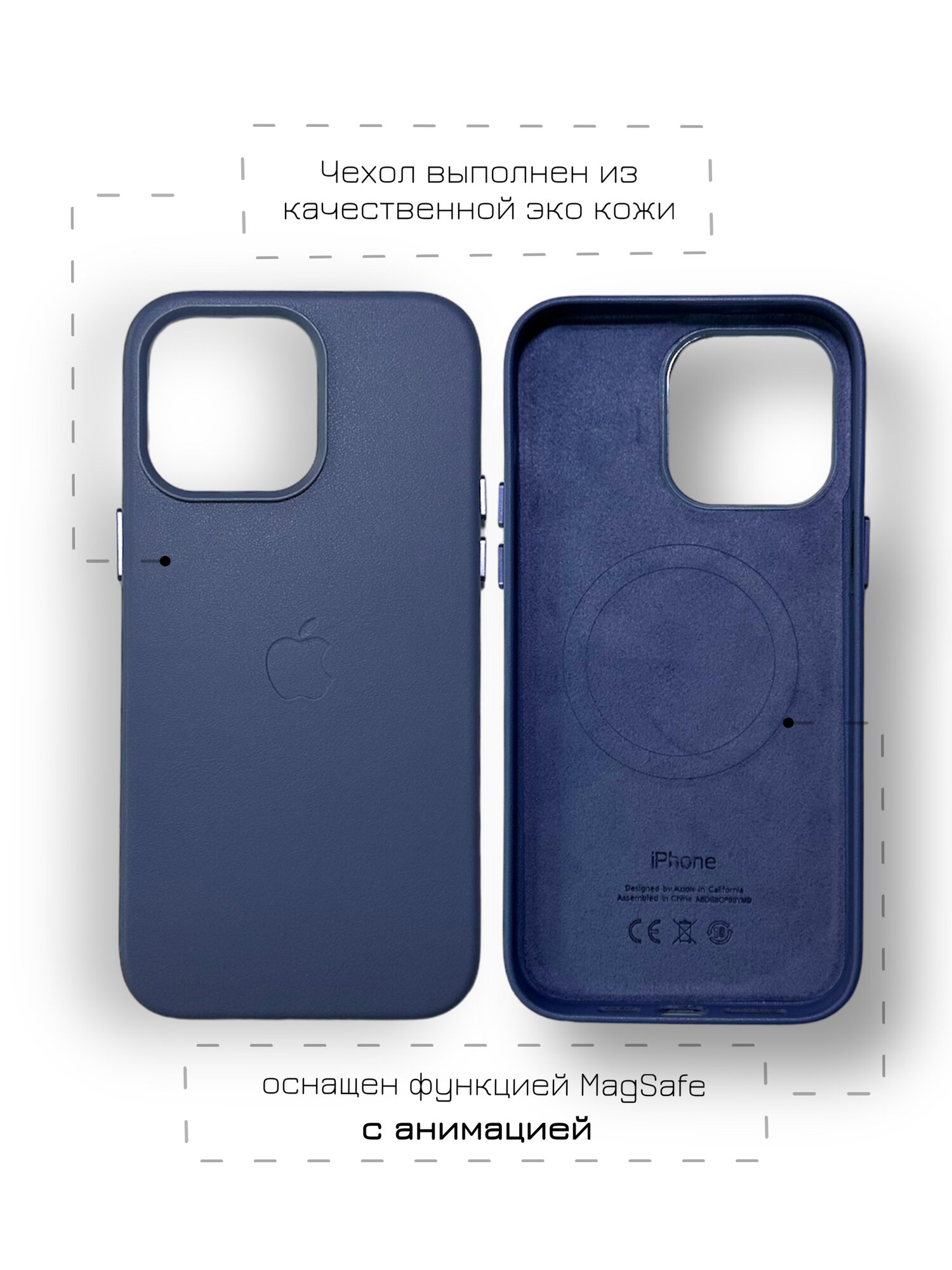 Чехол кожаный для iPhone 14 Pro, Leather Case, MagSafe, цвет темно - синий 1 299 ₽