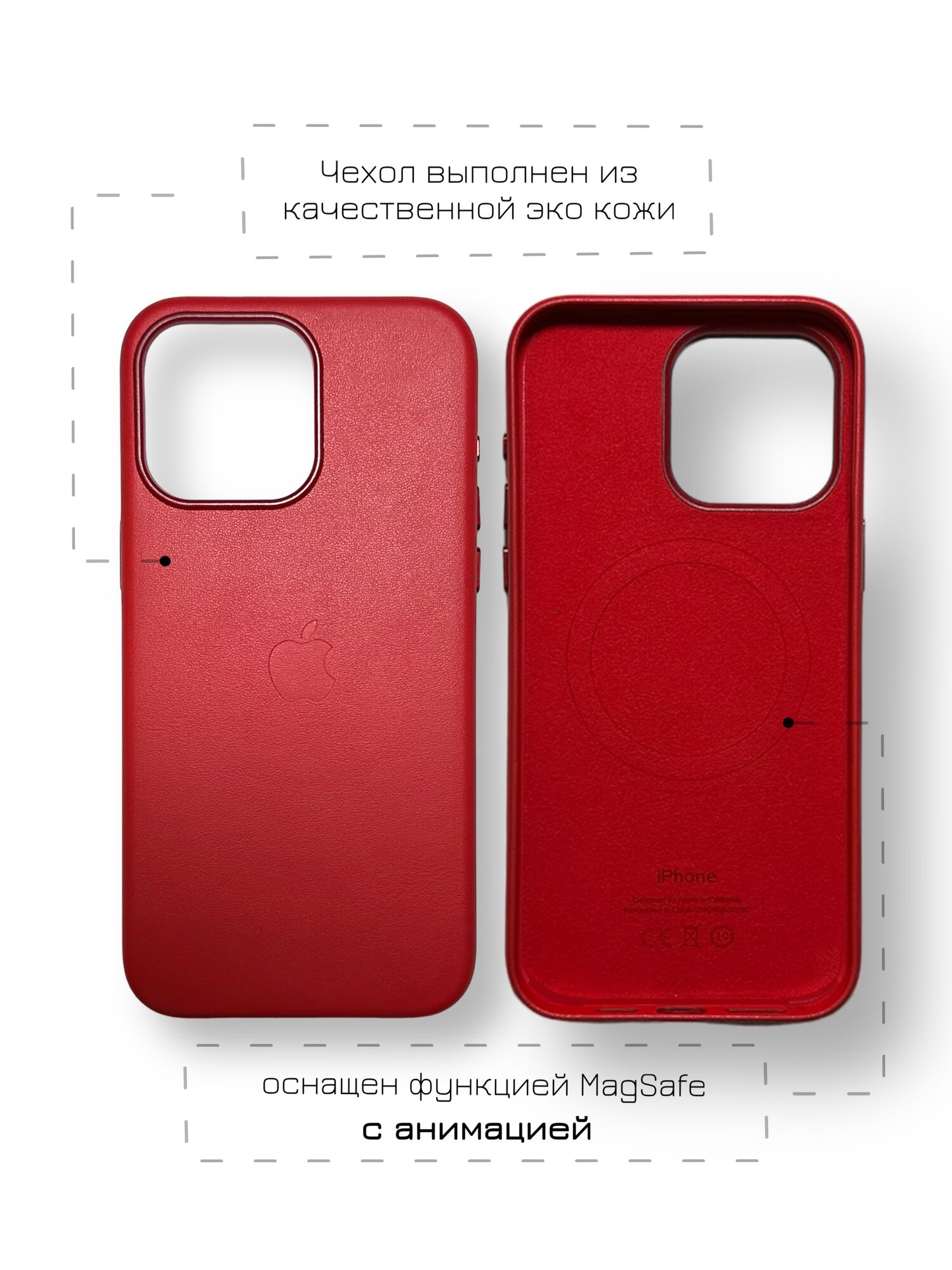 10 цен на Чехол кожаный для iPhone 14 Pro, Leather Case, MagSafe, цвет красный