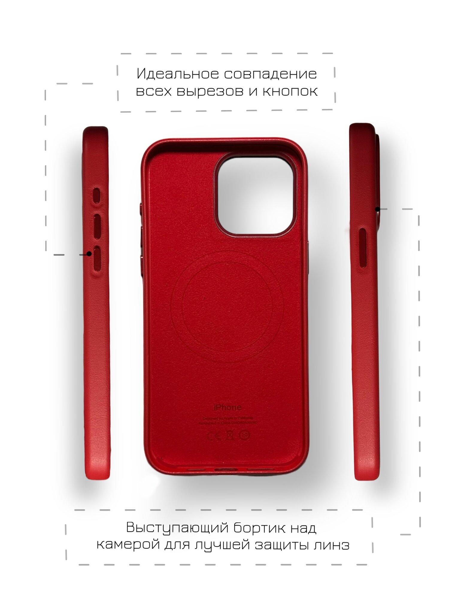 Отзывы на Чехол кожаный для iPhone 14 Pro, Leather Case, MagSafe, цвет красный