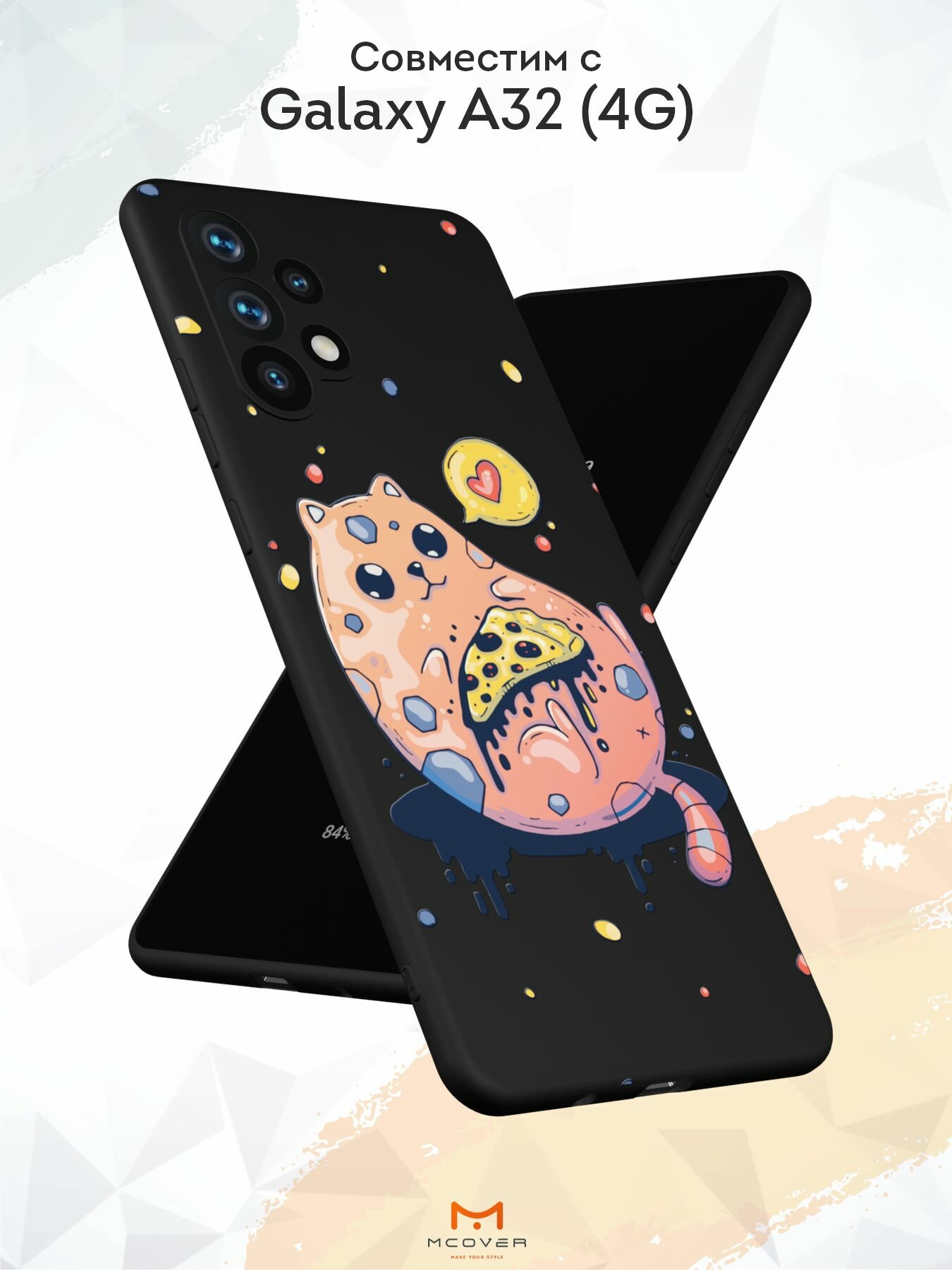 Силиконовый чехол Mcover для Galaxy A32 (Галакси А32), Космо-кот с пиццей информация: