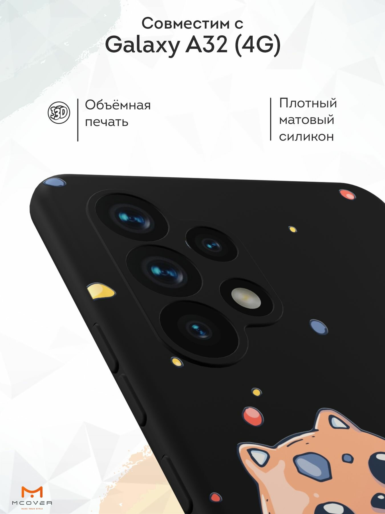 Силиконовый чехол Mcover для Galaxy A32 (Галакси А32), Космический кот 530 ₽