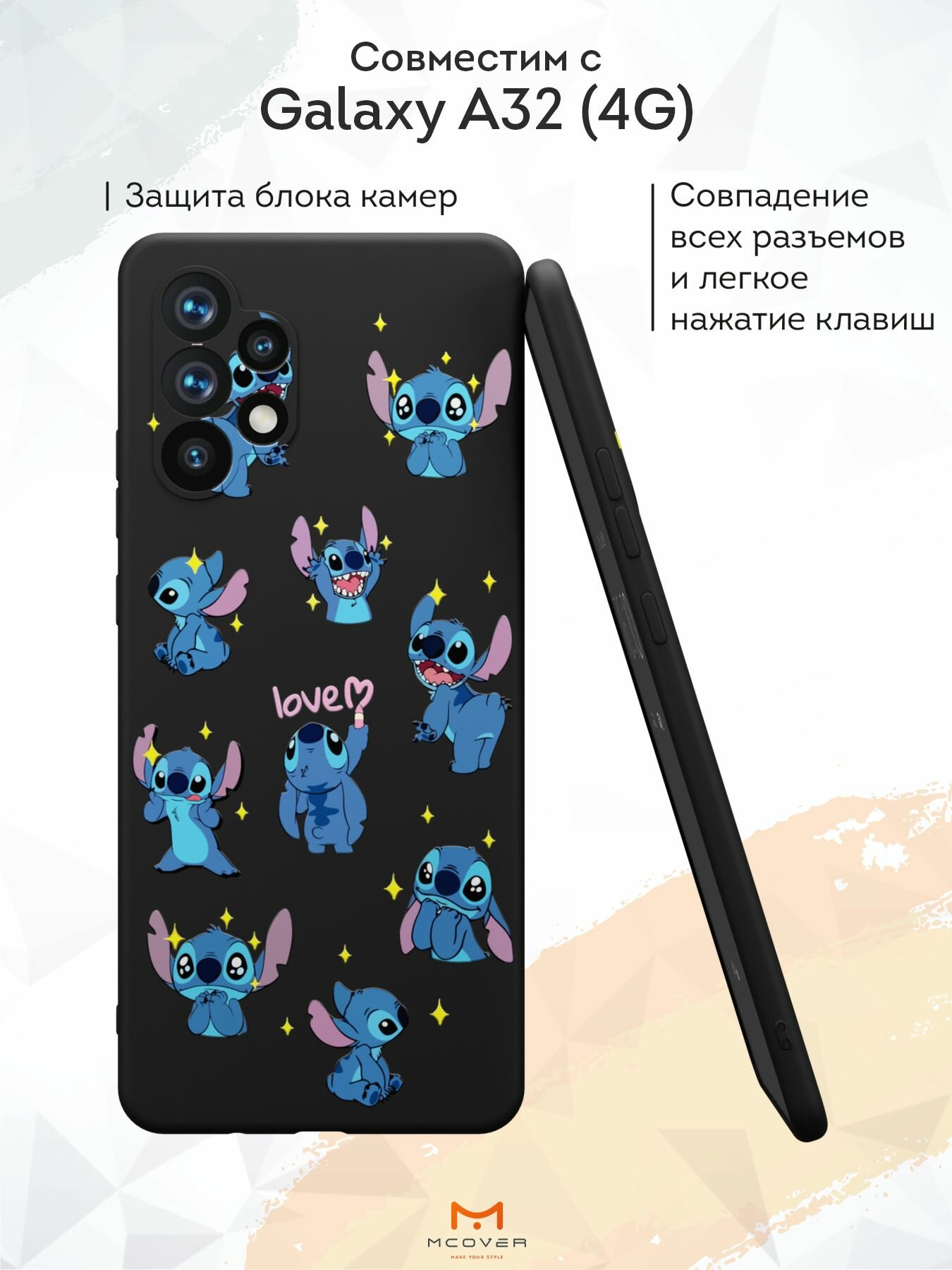 Отзывы на Силиконовый чехол Mcover для Galaxy A32 (Галакси А32), Стич love