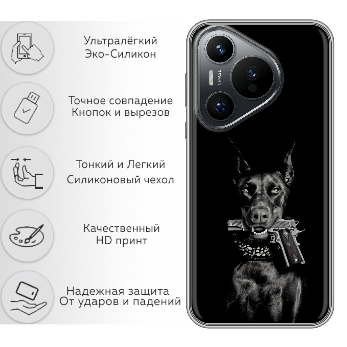 Отзывы на Чехол для Huawei Pura 70 с принтом Доберман и пистолет на Хуавей Пура 70