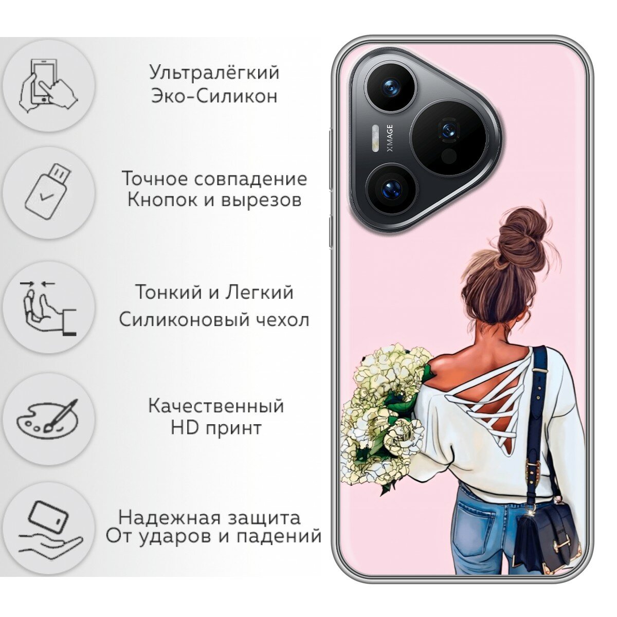 10 цен на Чехол для Huawei Pura 70 с принтом Девушка и букет на Хуавей Пура 70