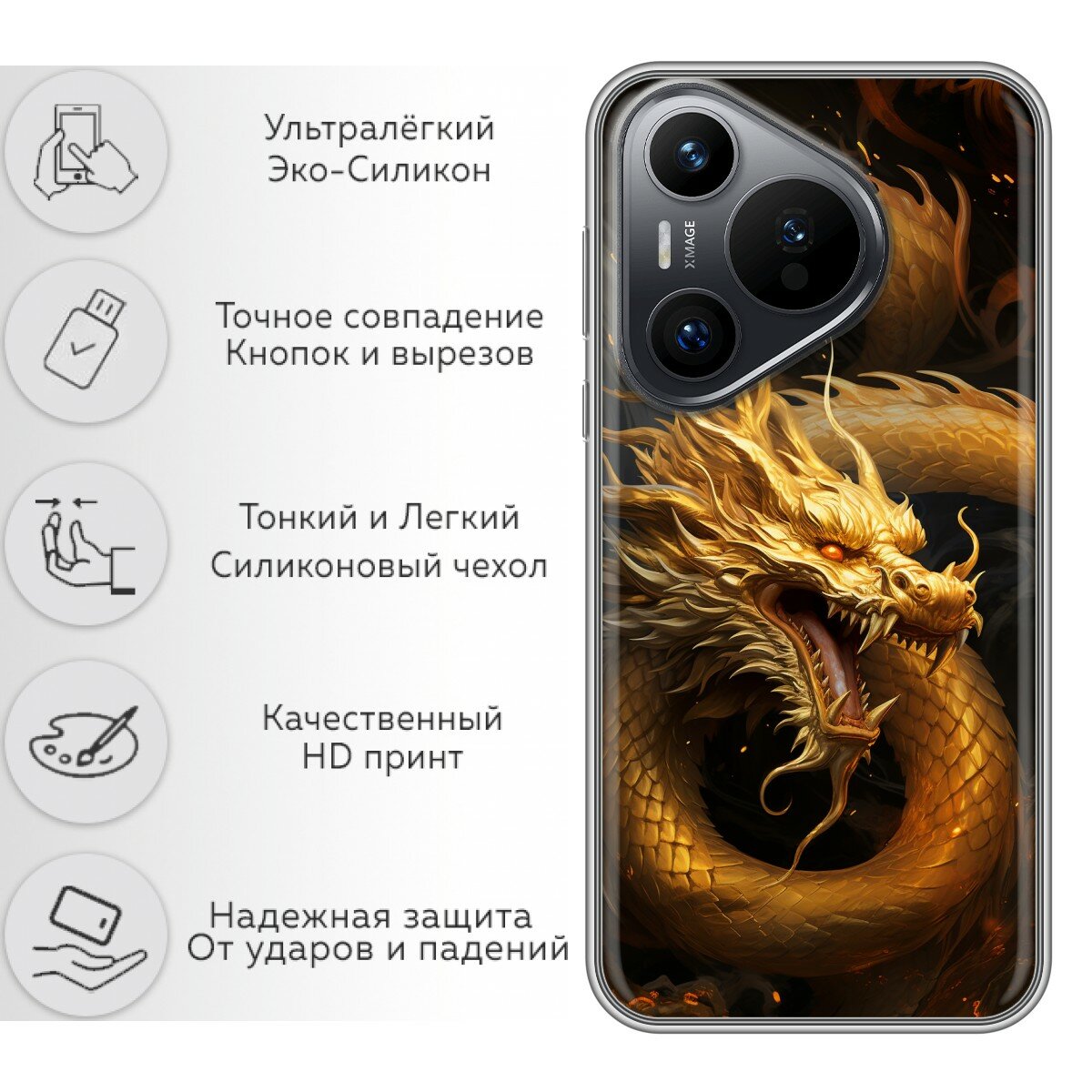 10 цен на Чехол для Huawei Pura 70 с принтом Дракон золотой на Хуавей Пура 70