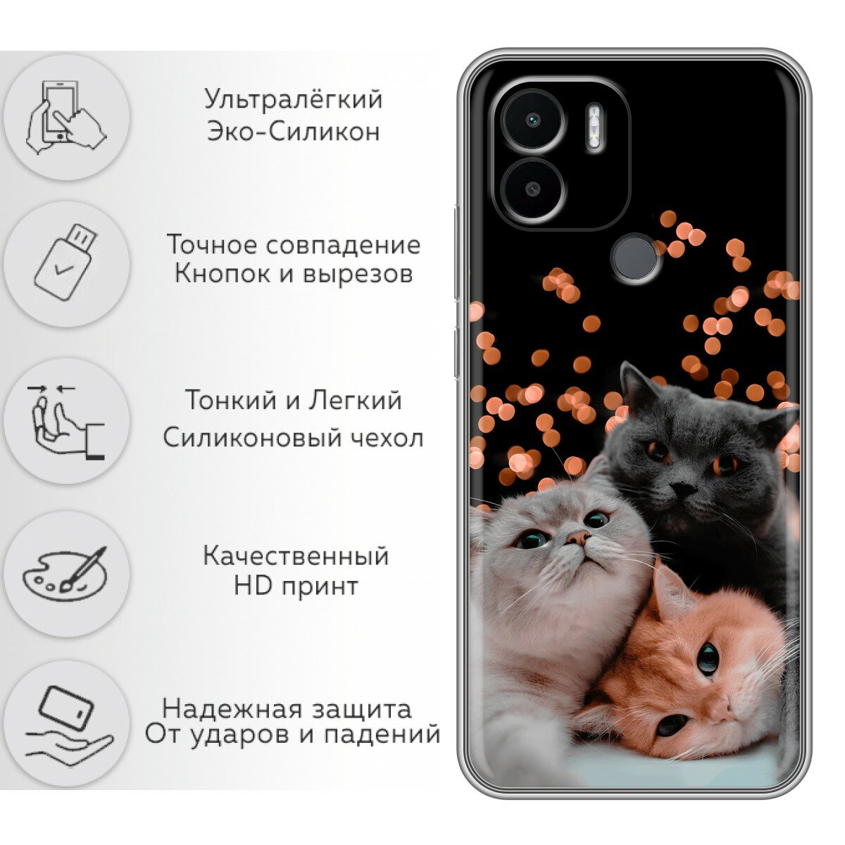 Отзывы на Чехол для Xiaomi Redmi A1+, Redmi A2+, Poco C51 с принтом Смешные котики на Сяоми Редми А1+, Редми А2+, Поко С51