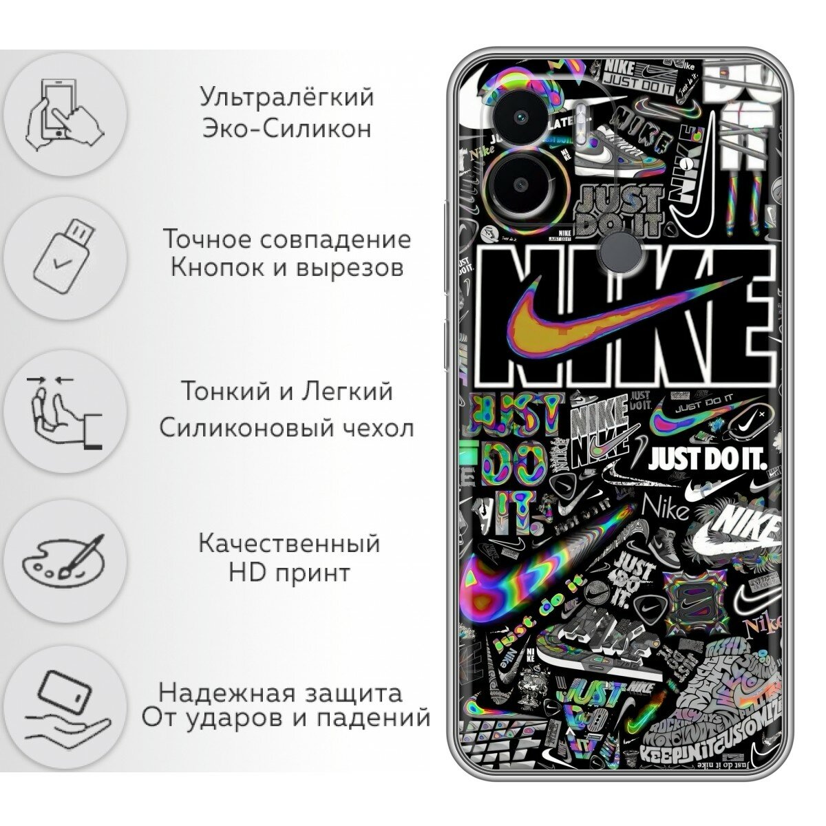 Чехол для Xiaomi Redmi A1+, Redmi A2+, Poco C51 с принтом Найк на Сяоми Редми А1+, Редми А2+, Поко С51 информация: