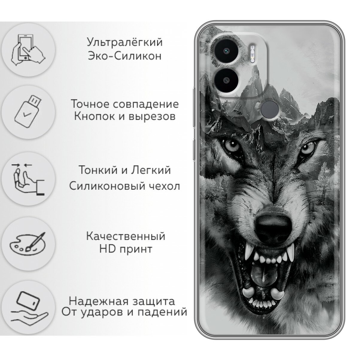 Чехол для Xiaomi Redmi A1+, Redmi A2+, Poco C51 с принтом Волк на Сяоми Редми А1+, Редми А2+, Поко С51 информация: