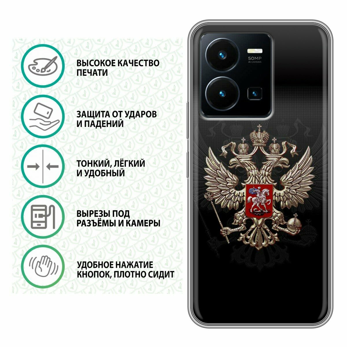 Отзывы на Дизайнерский силиконовый чехол для Виво У22 / Vivo Y22 Герб России