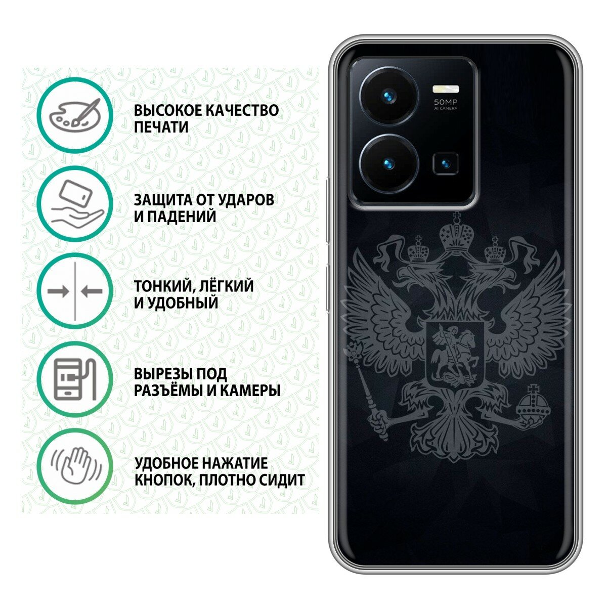 Дизайнерский силиконовый чехол для Виво У22 / Vivo Y22 Герб России принт информация: