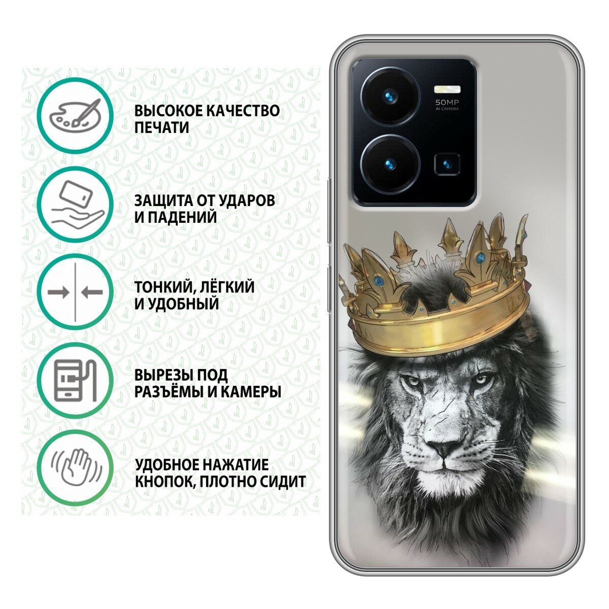 Дизайнерский силиконовый чехол для Виво У22 / Vivo Y22 Лев с короной информация: