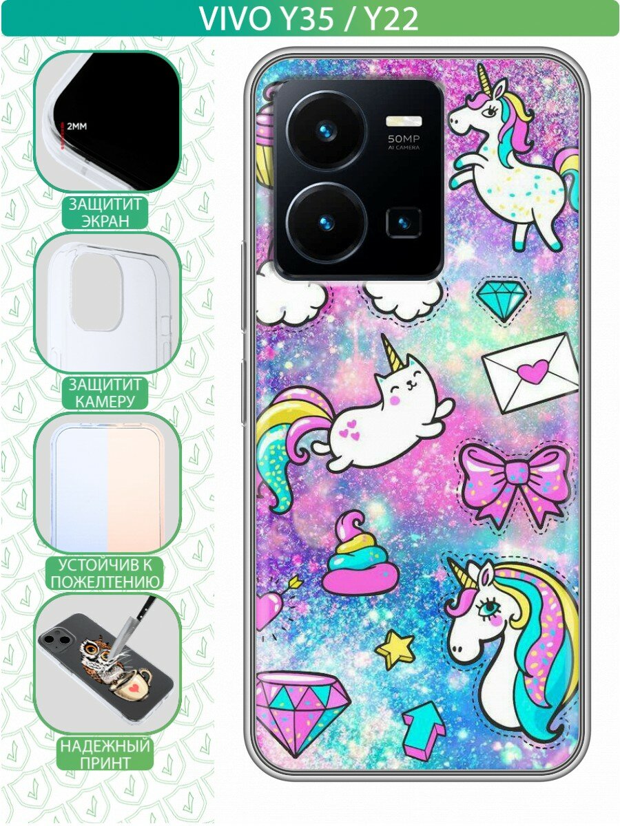 Дизайнерский силиконовый чехол для Виво У22 / Vivo Y22 Единороги информация: