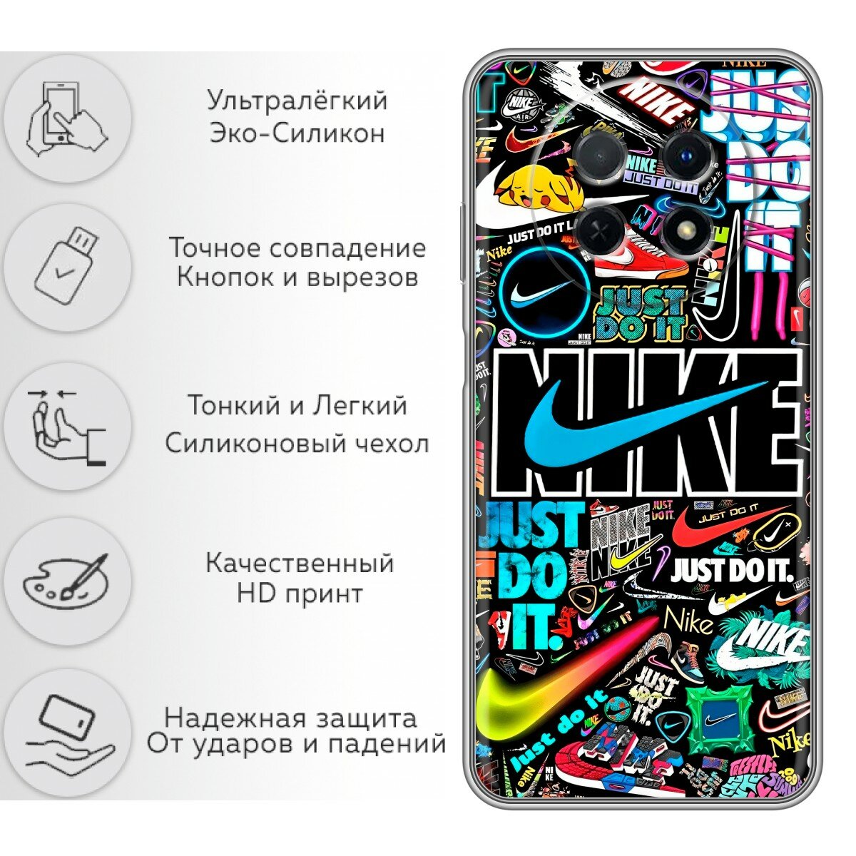Отзывы на Чехол для Huawei Nova Y91 с принтом найк nike черный на Хуавей Нова У91
