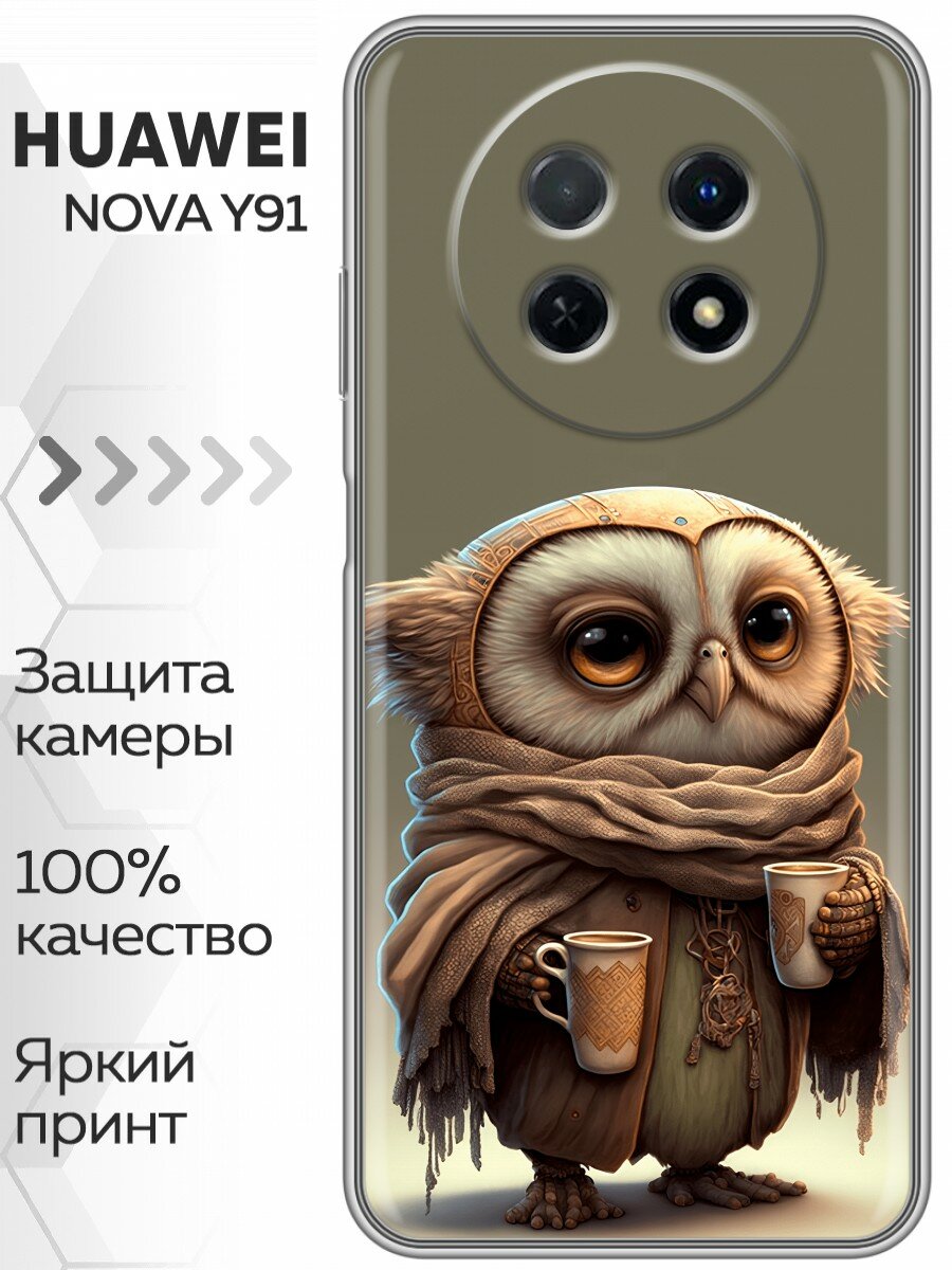 Чехол для Huawei Nova Y91 с принтом Смешная сова на Хуавей Нова У91 информация: