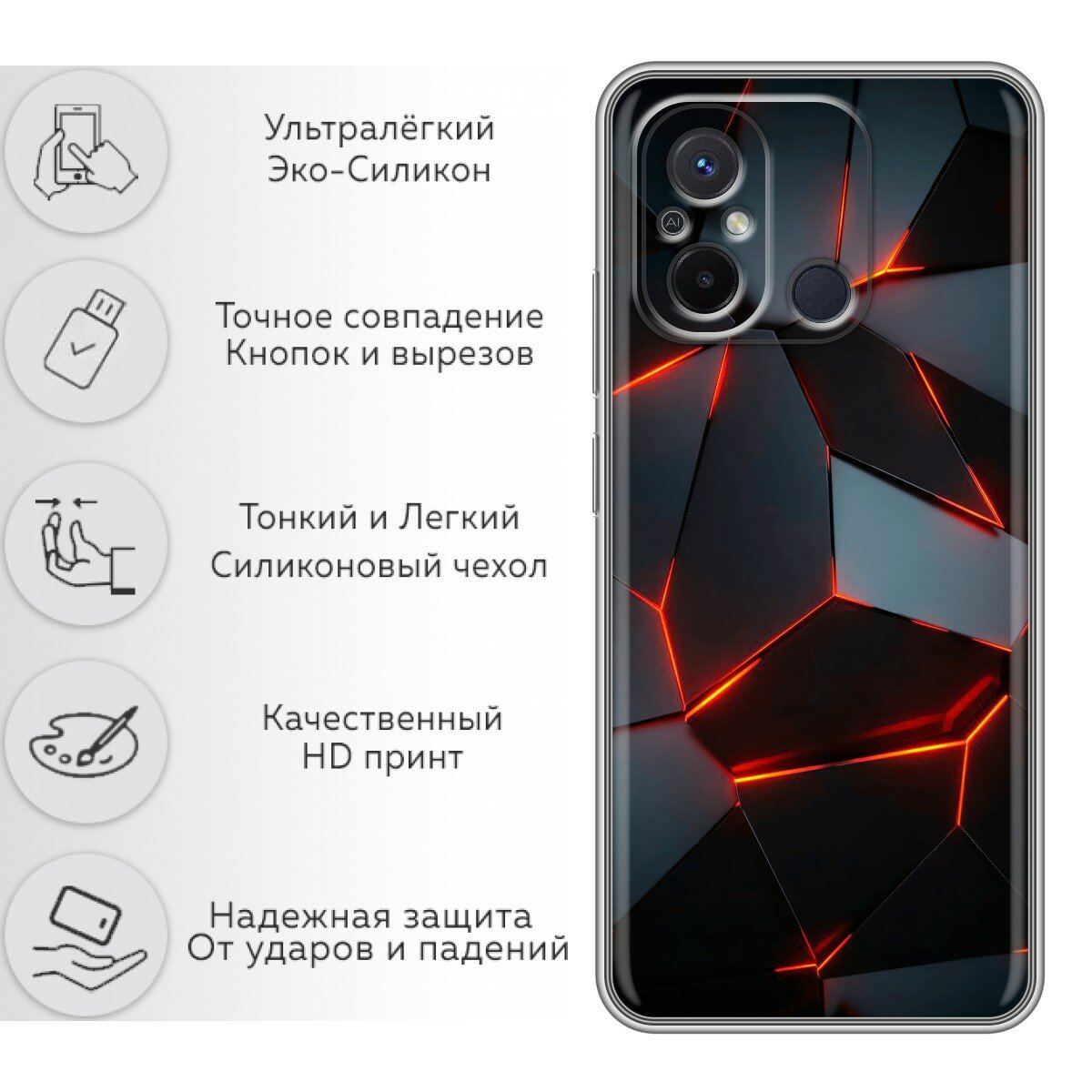 Отзывы на Чехол для Xiaomi RedMi 12C с принтом Черный на Сяоми Редми 12С