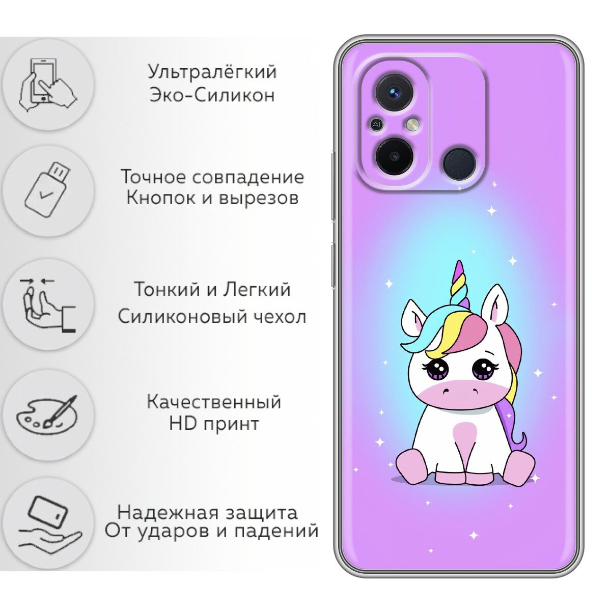 Отзывы на Чехол для Xiaomi RedMi 12C с принтом Розовый единорог на Сяоми Редми 12С