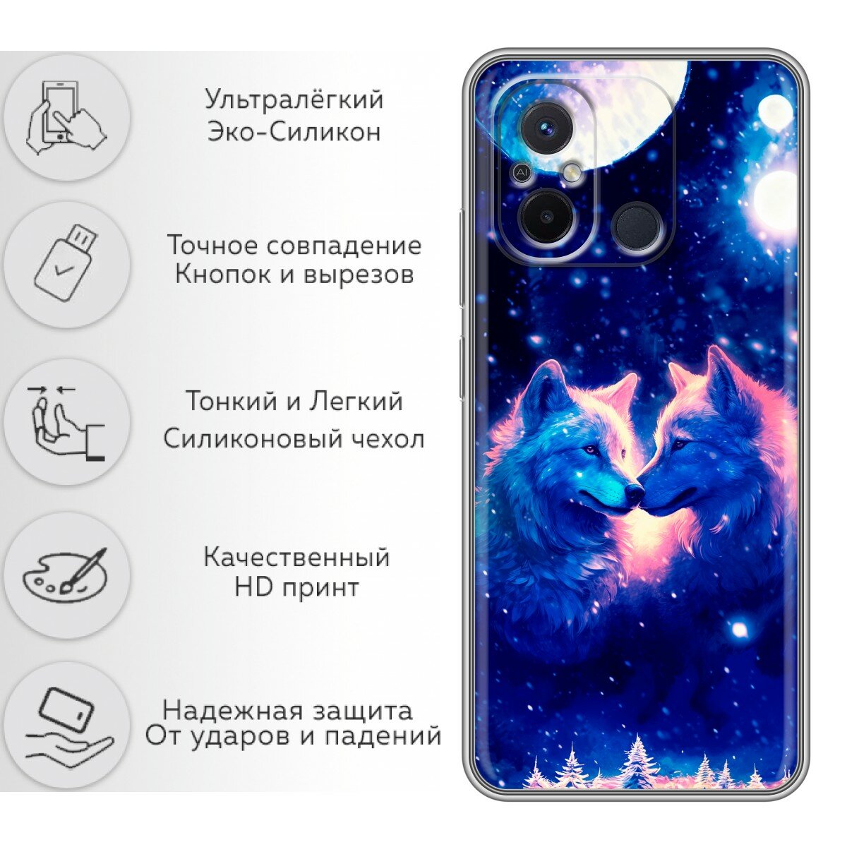 Отзывы на Чехол для Xiaomi RedMi 12C с принтом Волк и волчица на Сяоми Редми 12С