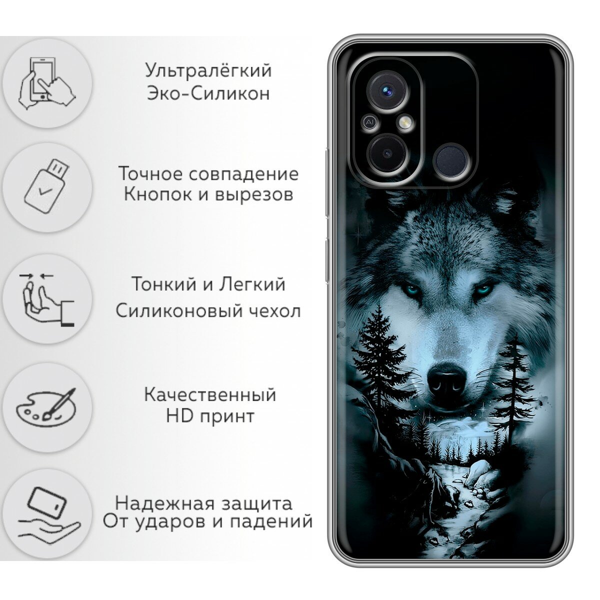 10 цен на Чехол для Xiaomi RedMi 12C с принтом Лесной волк на Сяоми Редми 12С