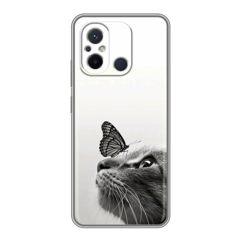 Чехол для Xiaomi RedMi 12C с принтом кот и бабочка на Сяоми Редми 12С информация: