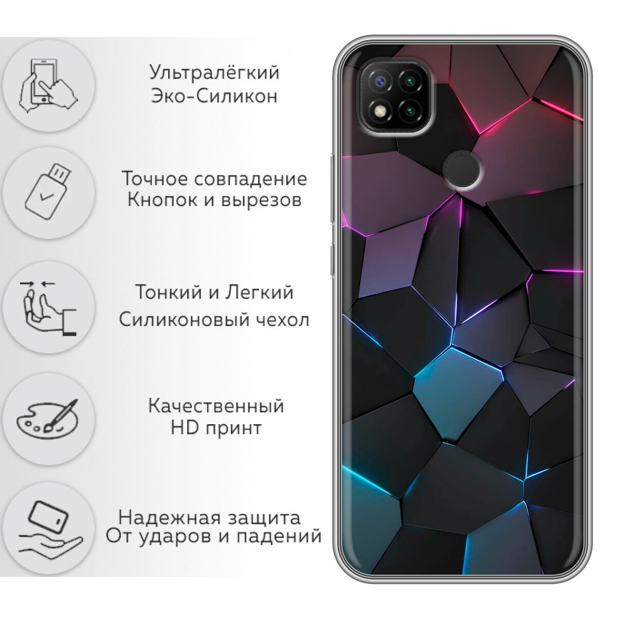 Отзывы на Чехол для Xiaomi RedMi 9C с принтом геометрия неона на Сяоми Редми 9С