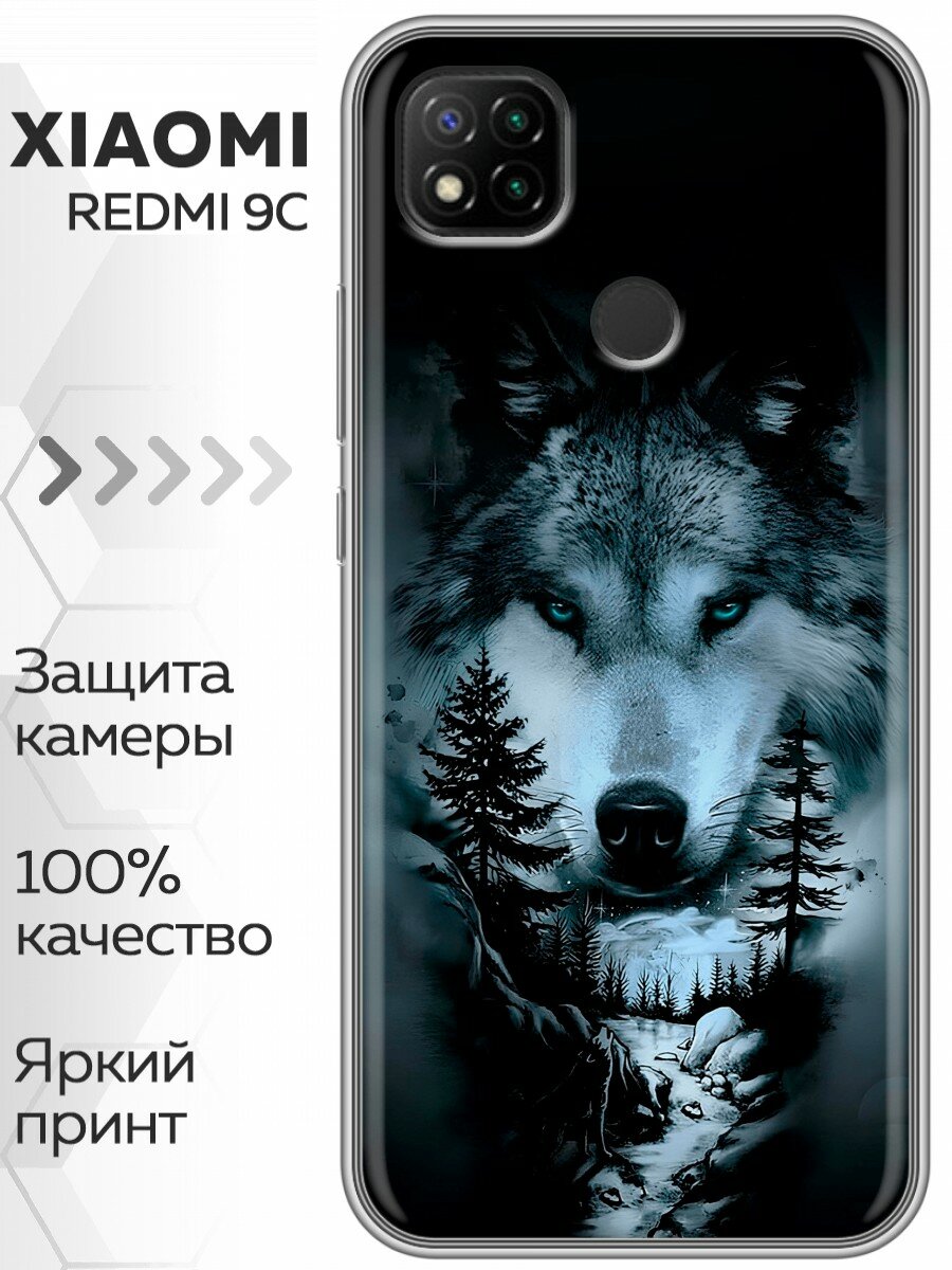 10 цен на Чехол для Xiaomi RedMi 9C с принтом Лесной волк на Сяоми Редми 9С