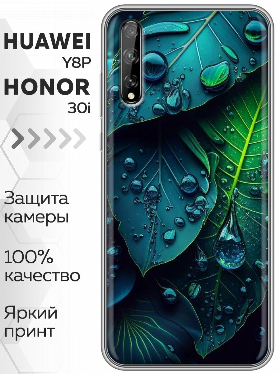 Чехол для Huawei Y8P, Honor 30i с принтом Зеленые листья на Хуавей У8Р Хонор 30 информация: