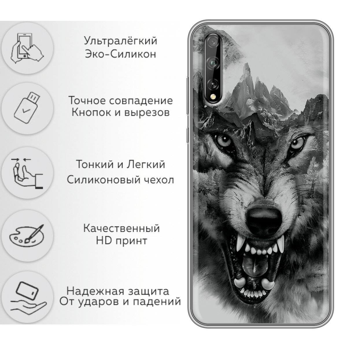 10 цен на Чехол для Huawei Y8P, Honor 30i с принтом Волк на Хуавей У8Р Хонор 30