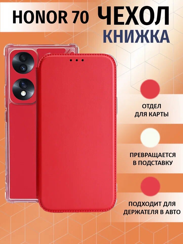 Чехол-книжка на honor 70 с противоударным бампером с усилиленными углами для хонор 70 красный информация: