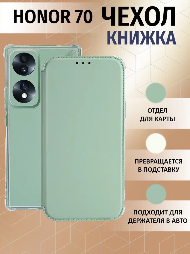 Отзывы на Чехол-книжка на honor 70 с противоударным бампером с усилиленными углами для хонор 70 светло-зеленый