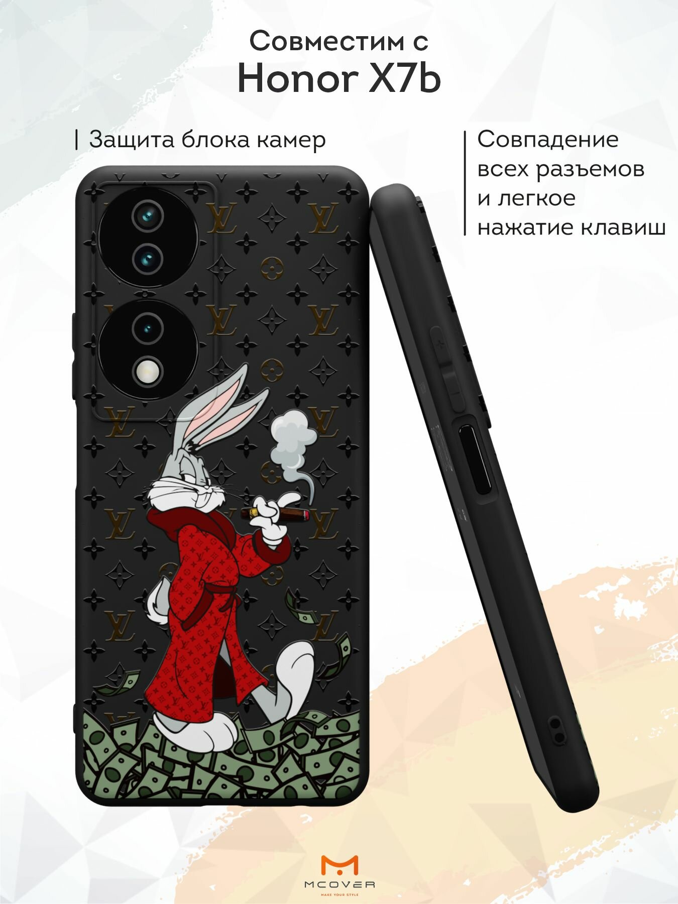Силиконовый чехол Mcover для Honor X7b (Хонор ИКС7Б), Кролик с деньгами информация:
