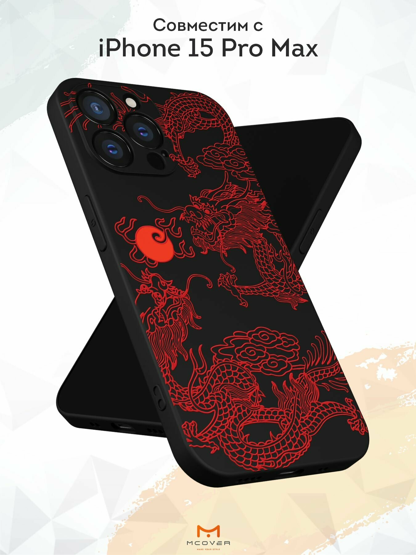 Отзывы на Чехол Mcover с рисунком Японский дракон янь / аниме на iPhone 15 Pro Max, силиконовый, матовый, защита камеры