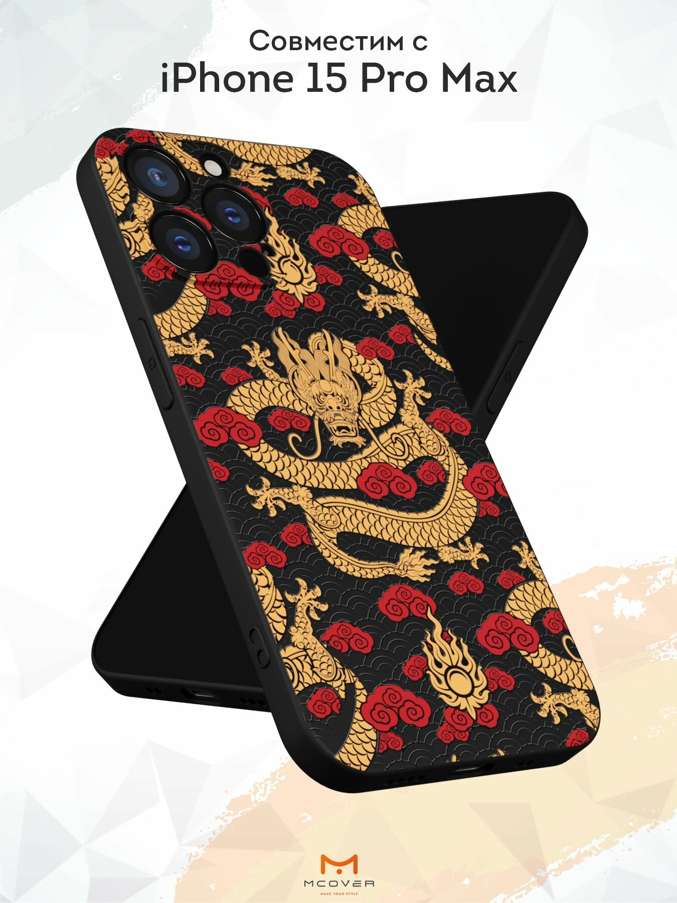 10 цен на Чехол Mcover с рисунком Золотой Дракон v.1 на iPhone 15 Pro Max, силиконовый, матовый, защита камеры