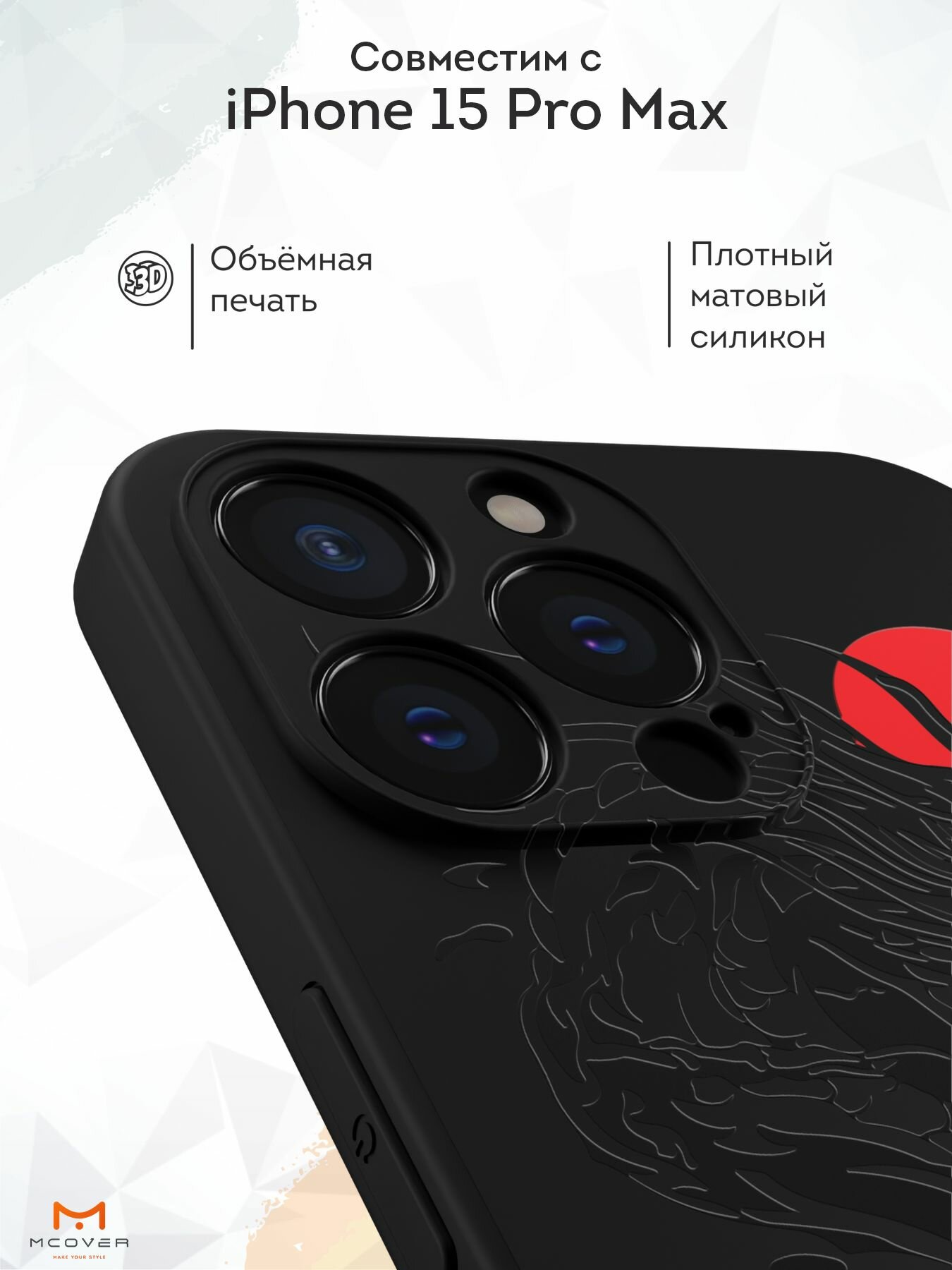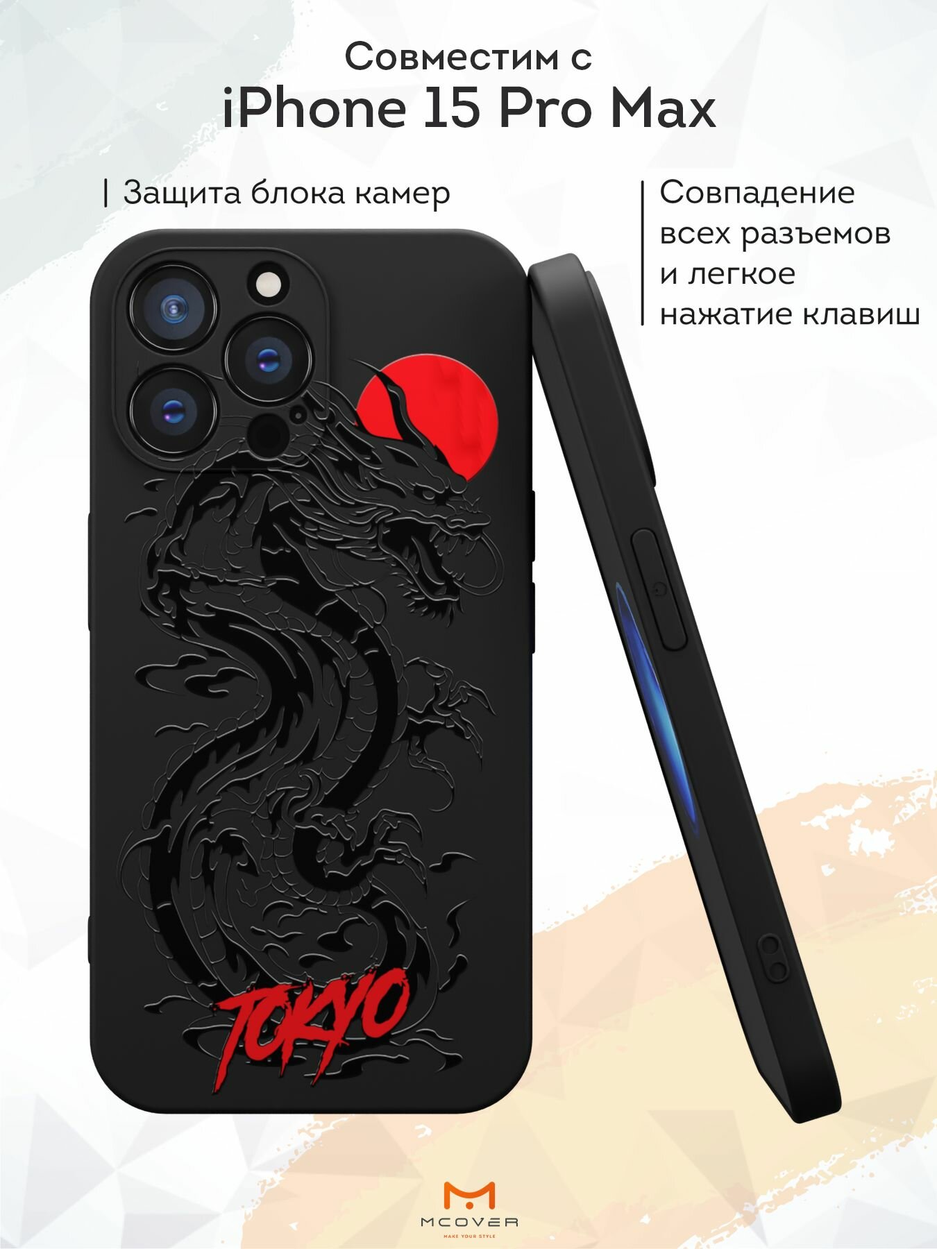 Чехол Mcover с рисунком Tokyo - Дракон на iPhone 15 Pro Max, силиконовый, матовый, защита камеры информация: