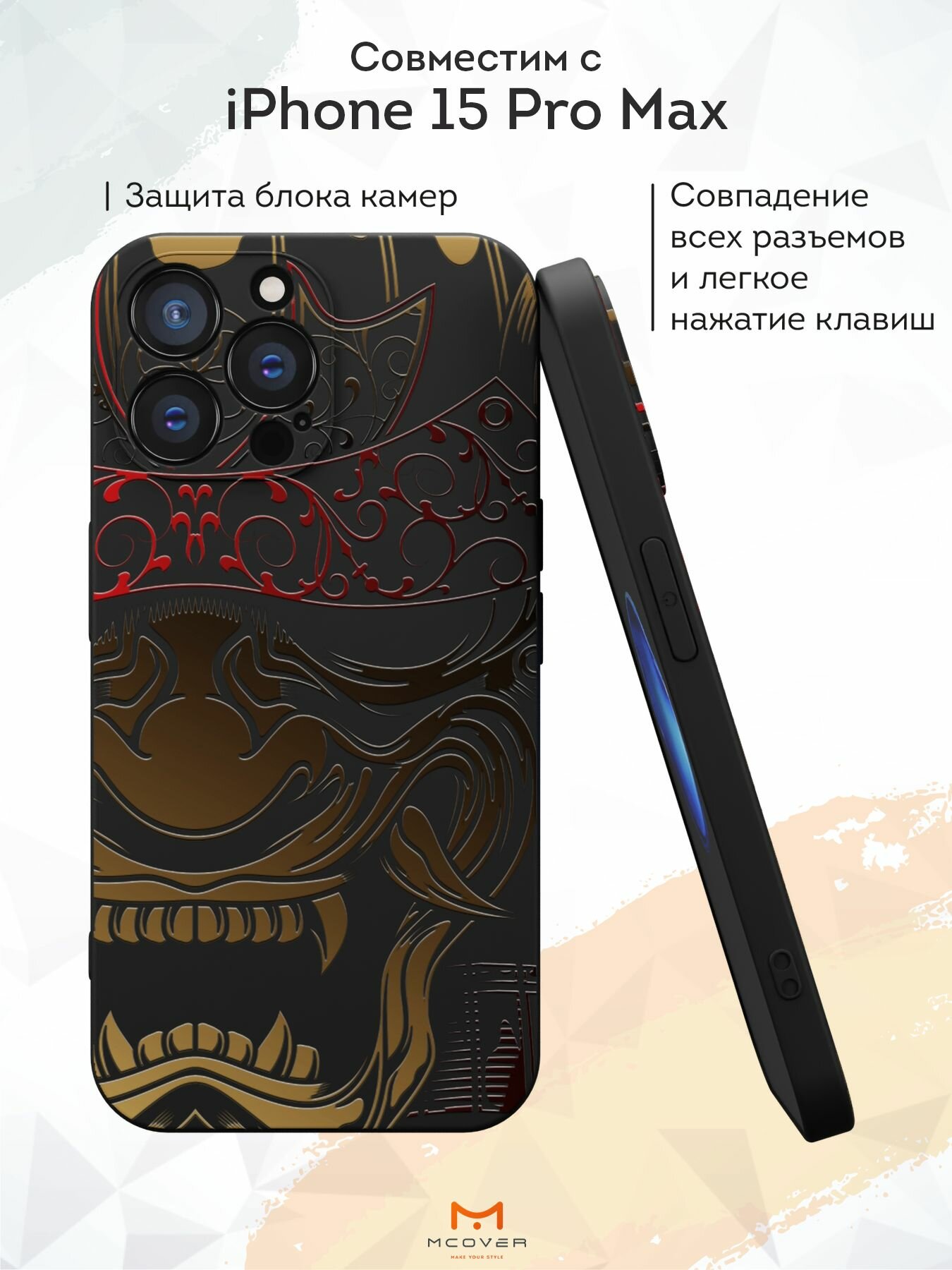 Чехол Mcover с рисунком Красная маска Они / Японский Демон на iPhone 15 Pro Max, силиконовый, матовый, защита камеры 530 ₽