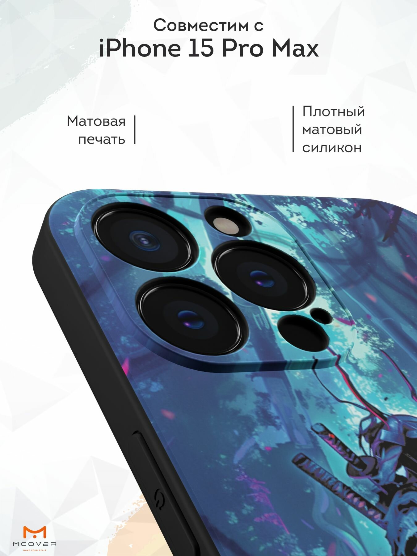 Чехол Mcover с рисунком Самурай Катана на iPhone 15 Pro Max, силиконовый, матовый, защита камеры 530 ₽