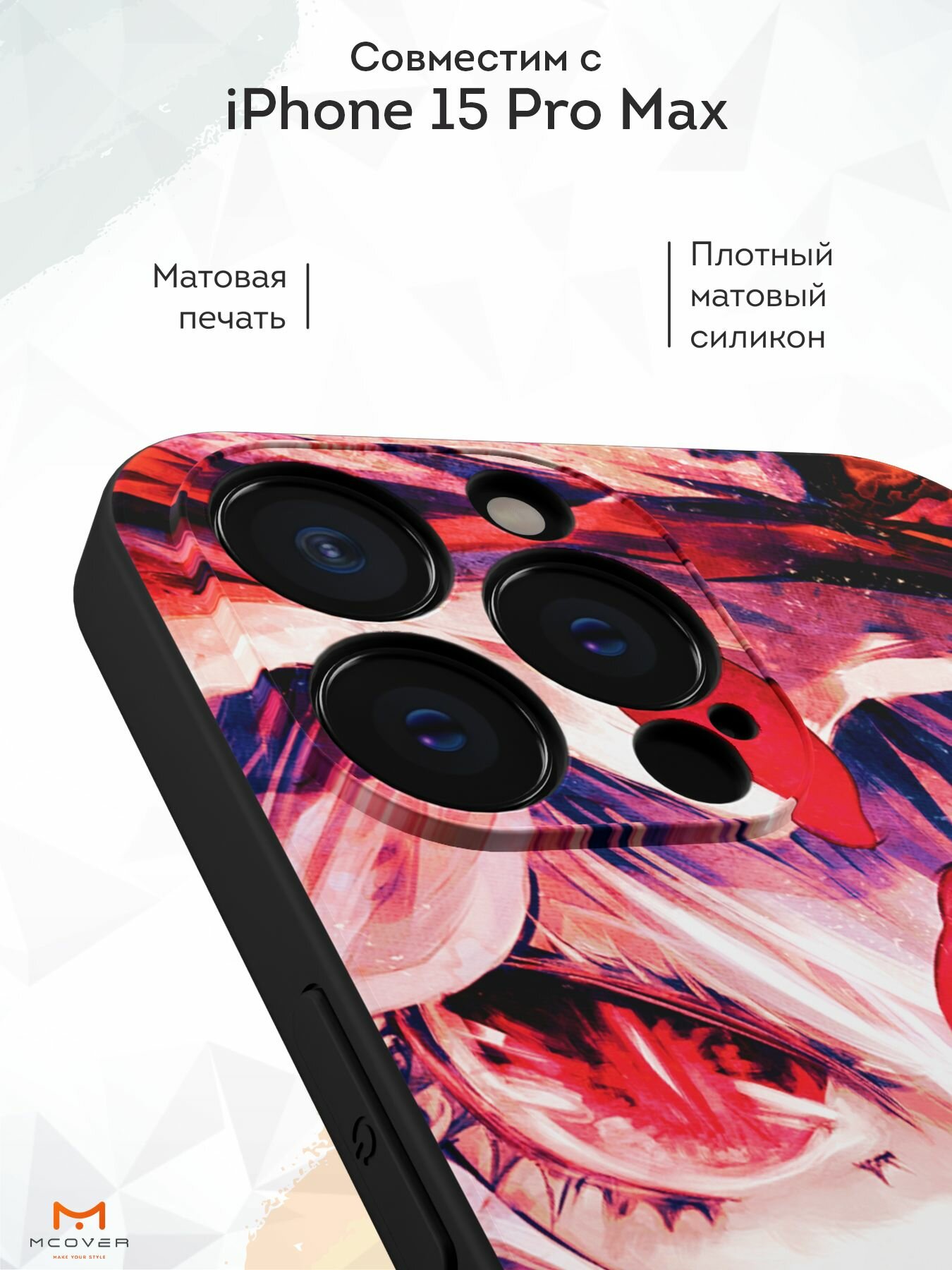 Чехол Mcover с рисунком Девушка-демон / аниме на iPhone 15 Pro Max, силиконовый, матовый, защита камеры 530 ₽