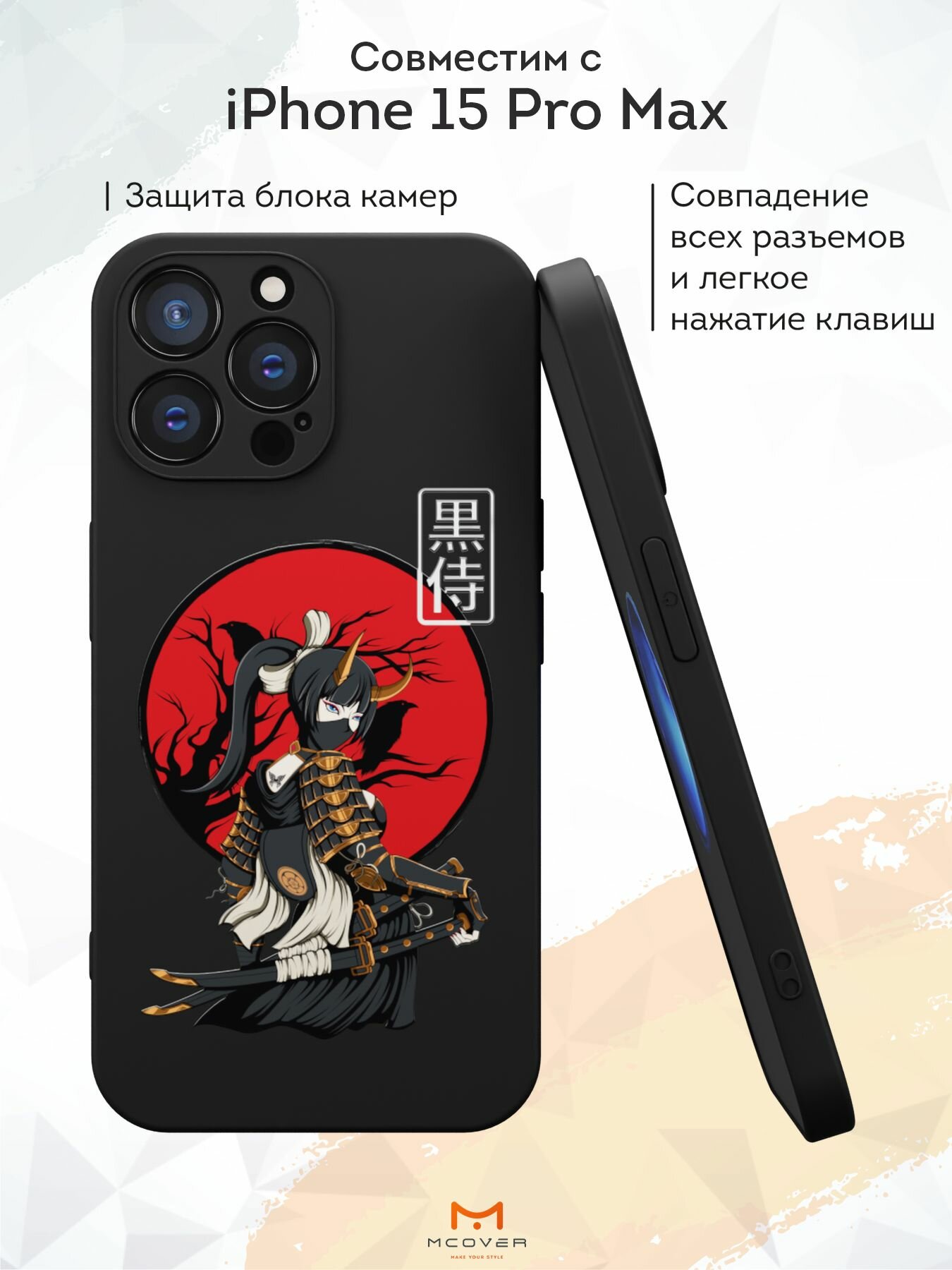 Чехол Mcover с рисунком Самурай Катана на iPhone 15 Pro Max, силиконовый, матовый, защита камеры 530 ₽